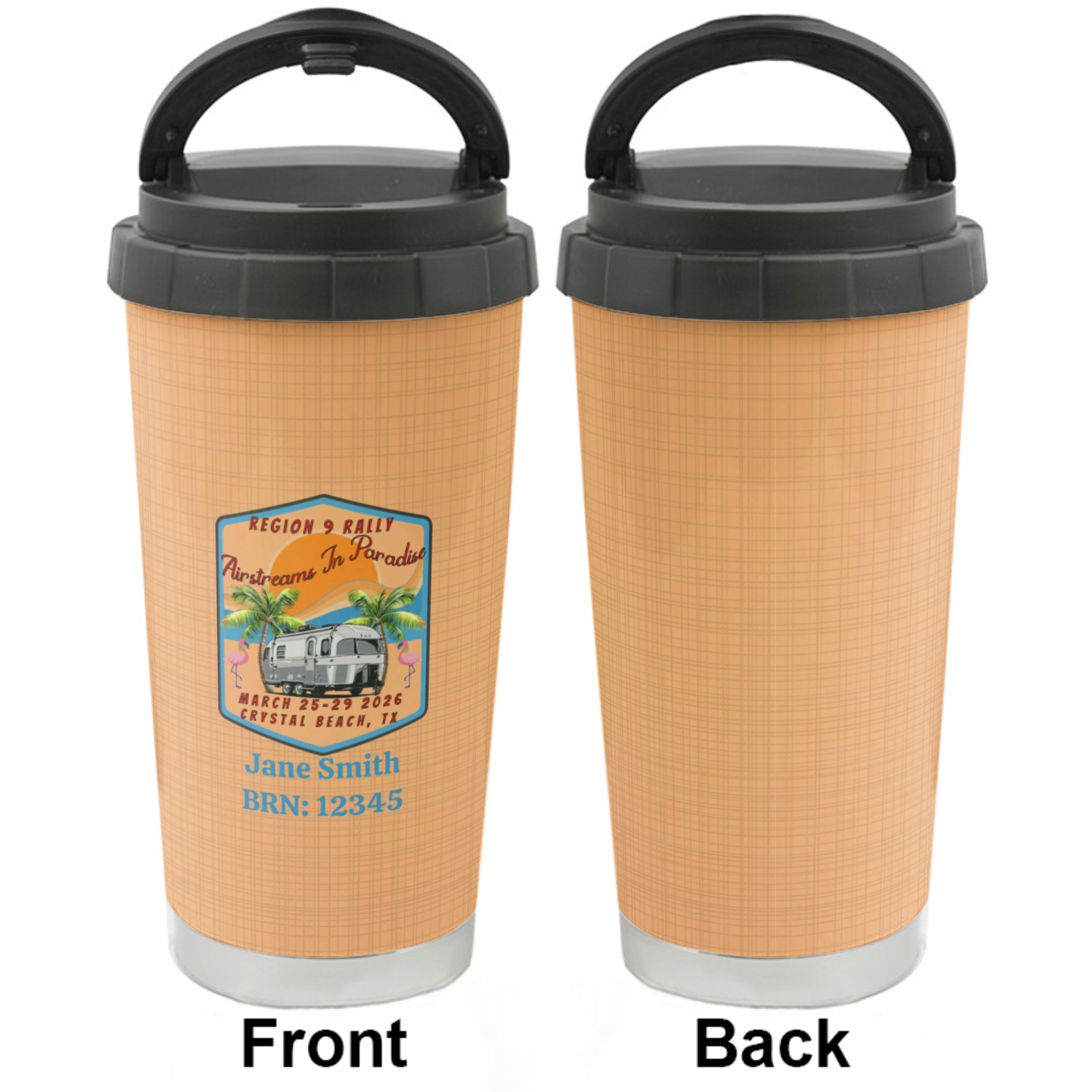 This sleek and tapered 16 oz stainless steel travel cup is a perfect fit in the hand. With the strip of visible stainless steel on the bottom, you'll be feeling classy!