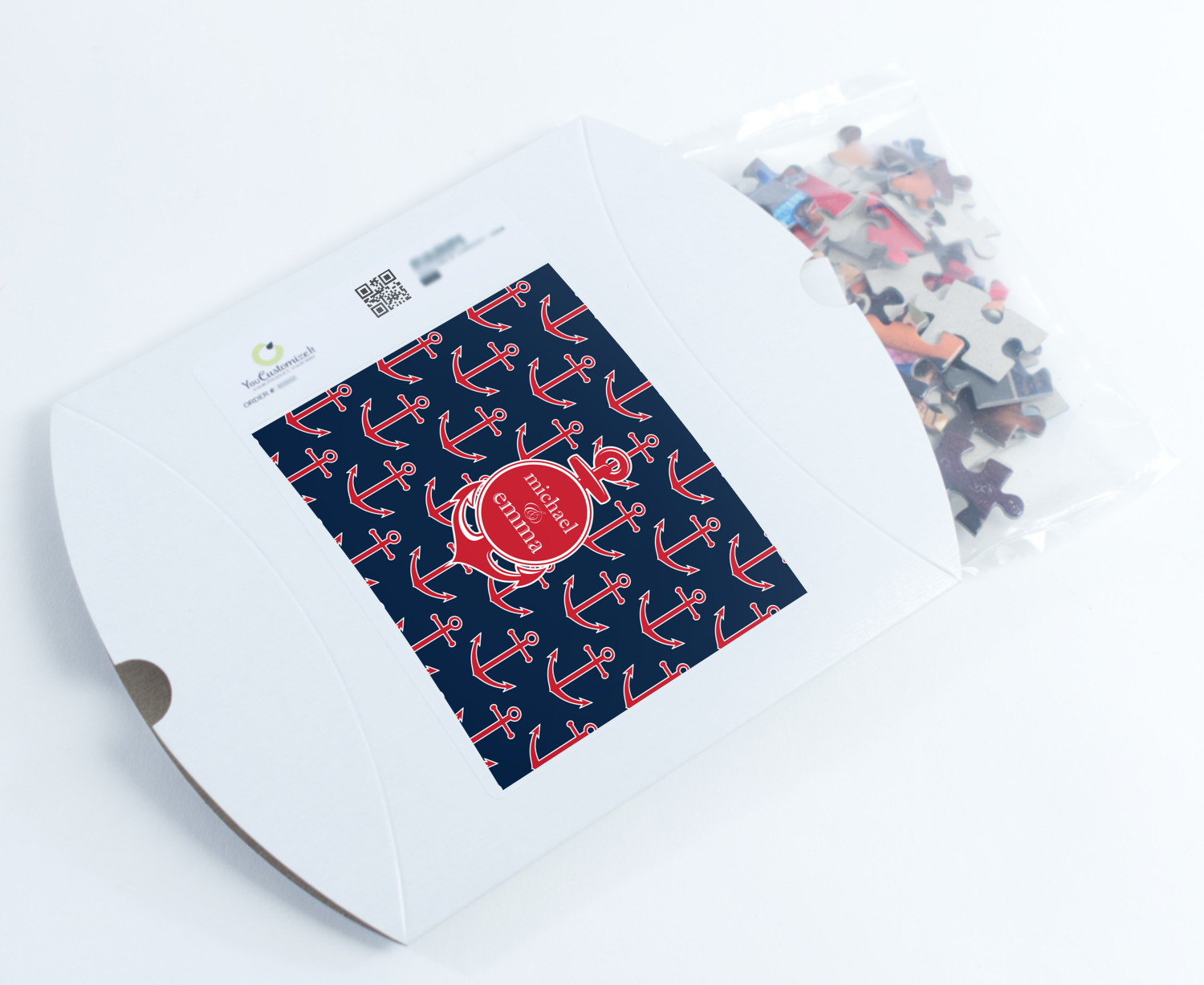 Depending on the look you are trying to achieve, you can add; a thematic pattern or background, with a photo in a frame and text or personalization to your puzzle. Basically if you can imagine it, you can design it!