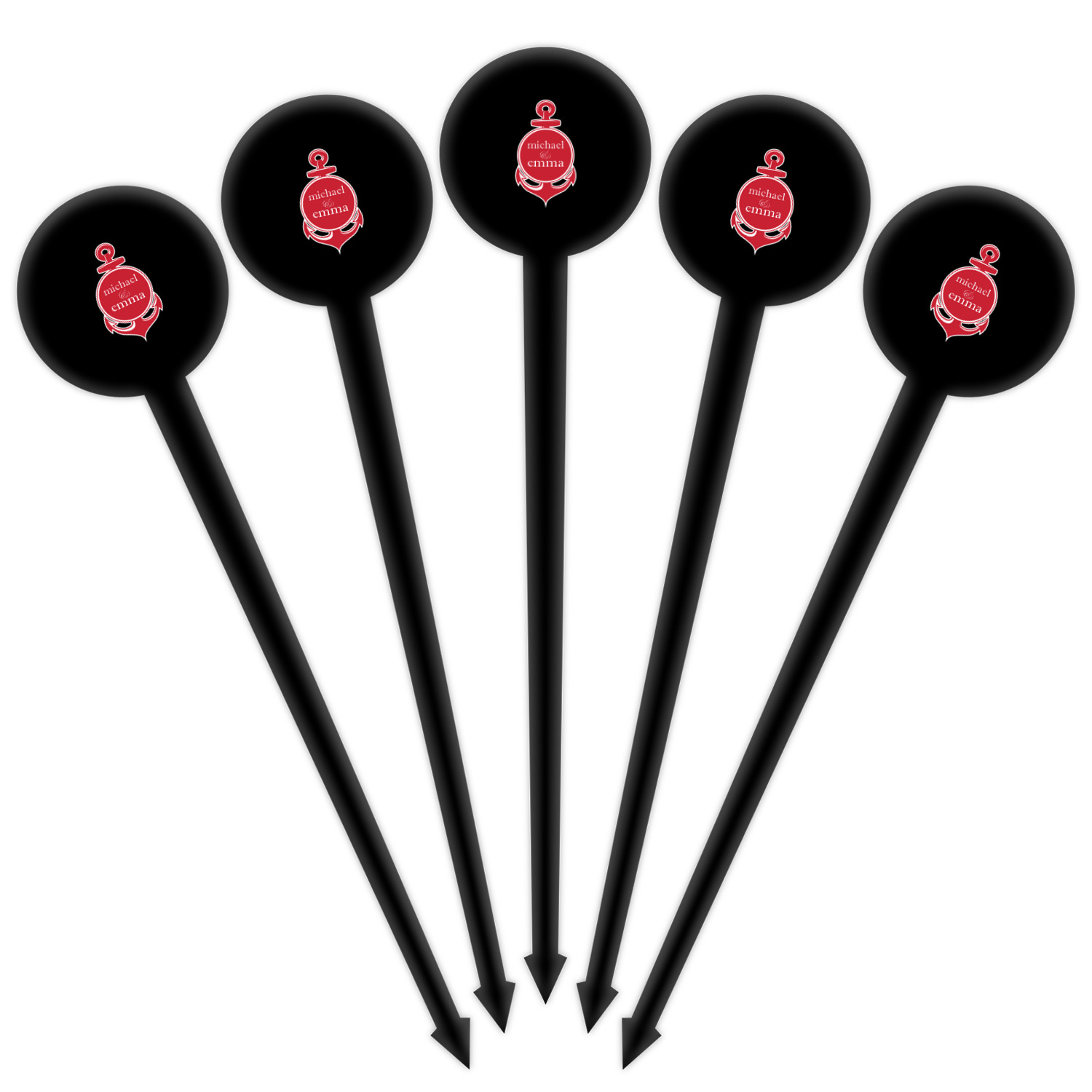 Coastal / Beach Style Designs for 4" Round Plastic Food Picks - Black - Double-Sided