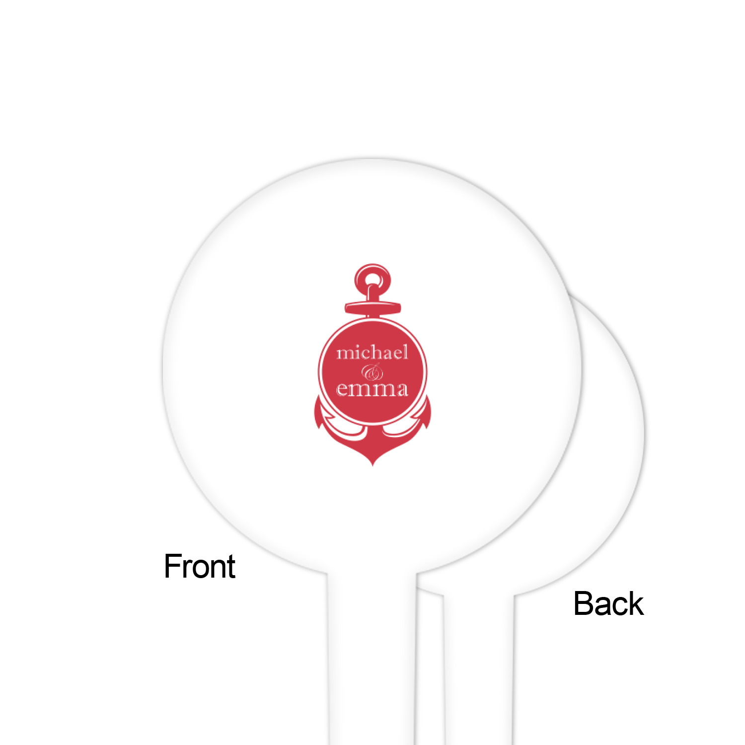 Coastal / Beach Style Designs for 4" Round Plastic Food Picks - White - Single-Sided