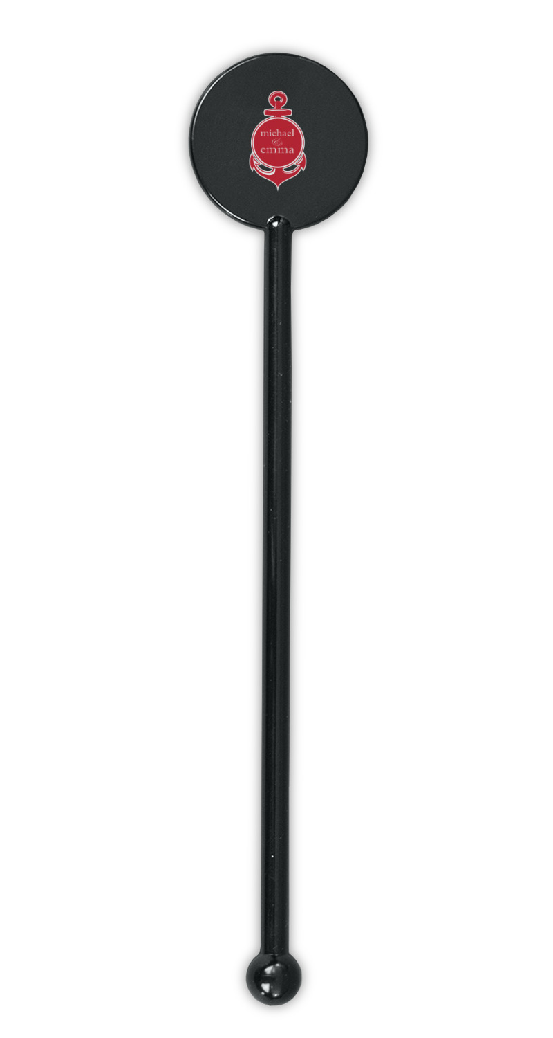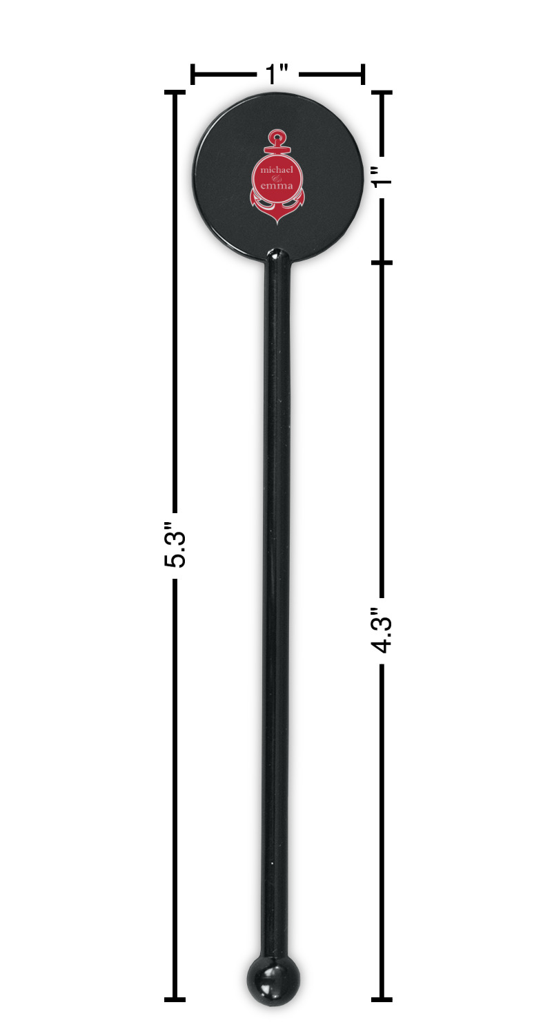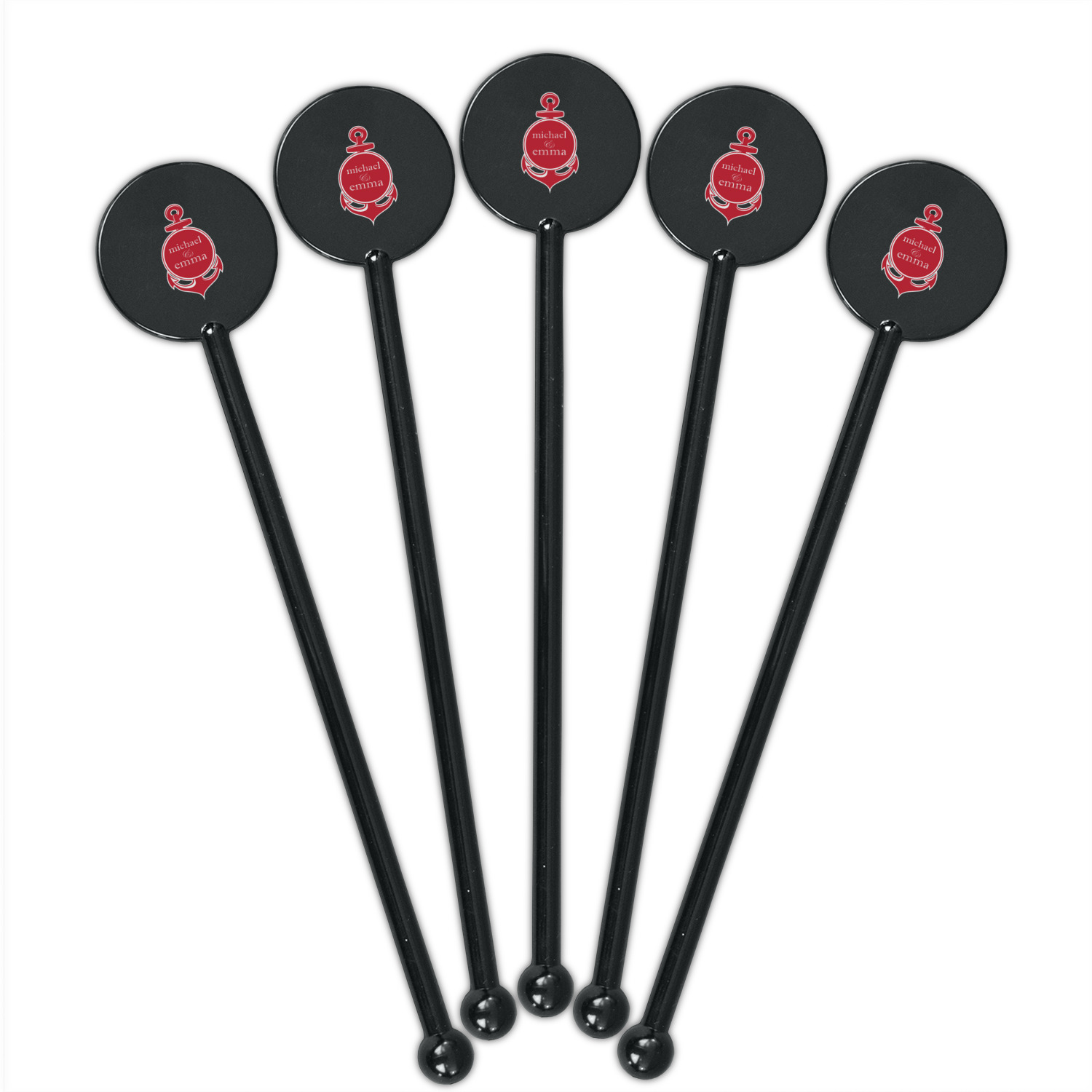 Coastal / Beach Style Designs for 5.5" Round Plastic Stir Sticks - Black - Single-Sided