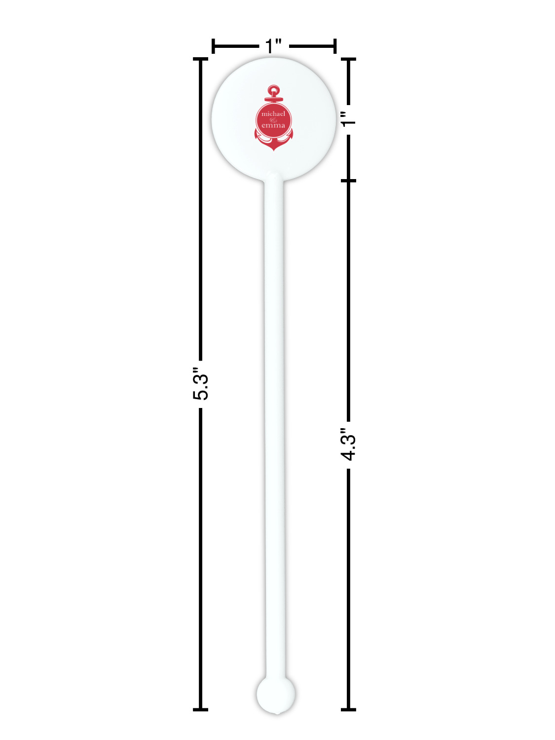 Coastal / Beach Style Designs for 5.5" Round Plastic Stir Sticks - White - Single-Sided