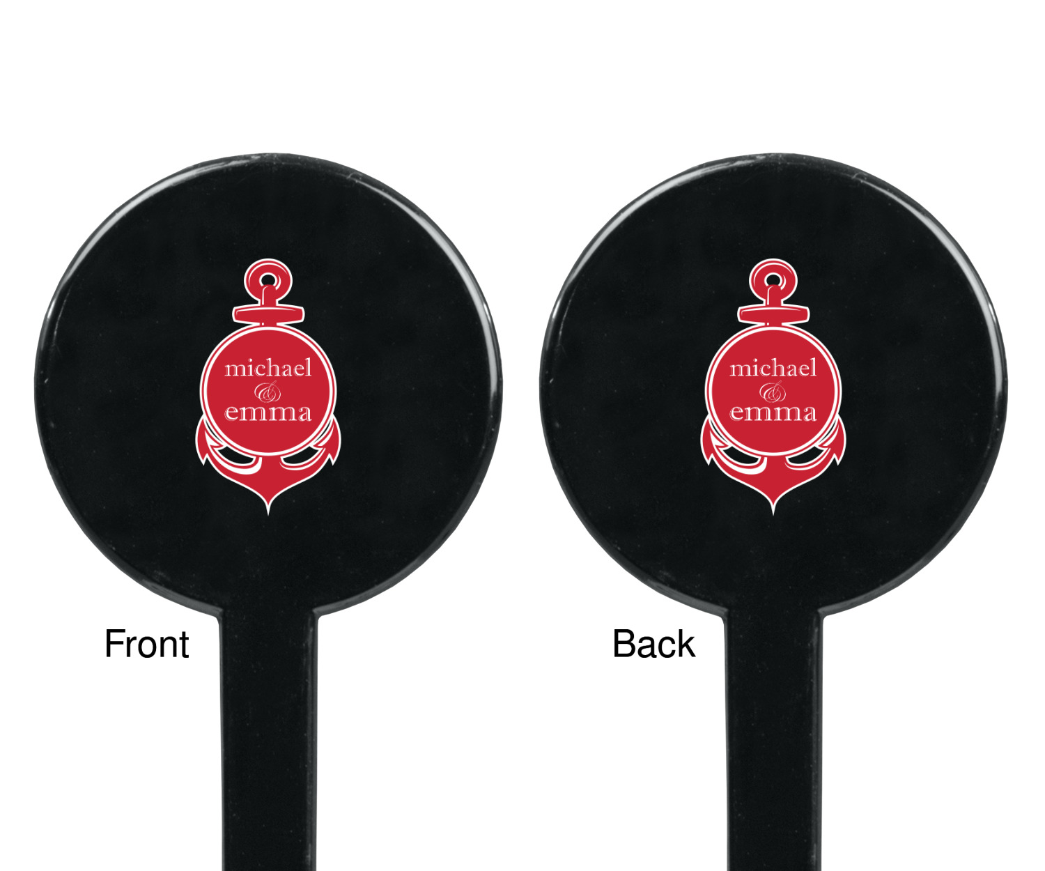 Coastal / Beach Style Designs for 7" Round Plastic Stir Sticks - Black - Double-Sided