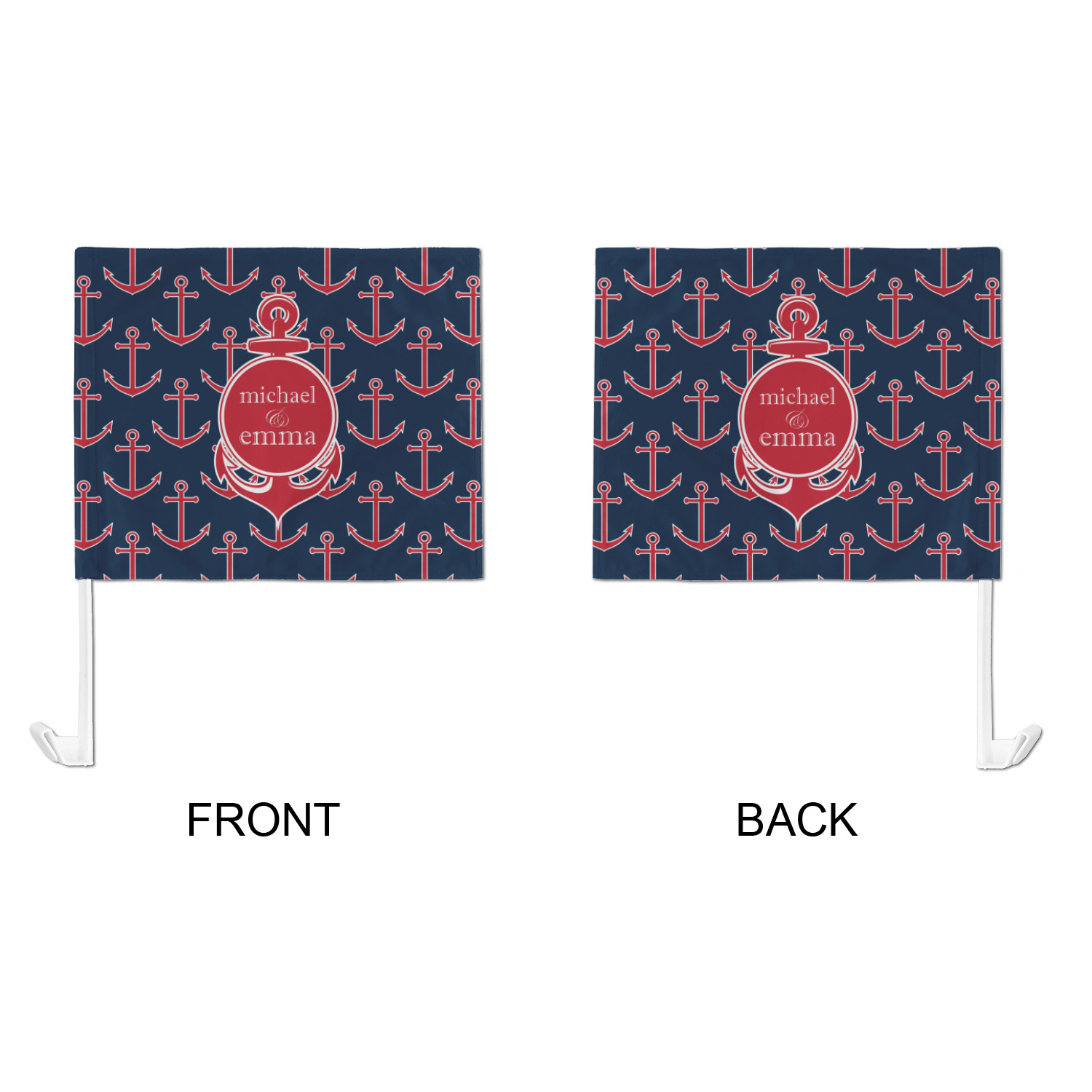 Our personalized flags are made from a durable, yet lightweight cloth that will proudly bear your logo or design of choice, while withstanding the outside elements. We have two size options - 8" x 11" and 11" x 15". Both come with a flag pole which includes a clip that secures the pole to the side window, whether it is rolled up or down. The flags are printed on both sides to display your design from all directions.