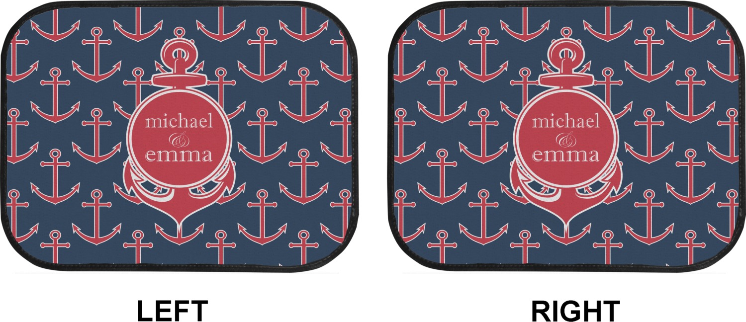 We craft our auto floor mats mats from polyester, apply a black finish to the edges, and lined at the bottom to prevent slippage. These mats protect your floors from grass, mud, and any accidental spills. We display your personalized design on the front face of each mat. The sizes of these car floor liners are standardized to provide a versatile fit for all vehicles. The front rows car mats measure at 17 by 26.5 inches, while the back rows measure at 17 by 13 inches. We sell three packages of car floor mats. You can purchase a pair of front row car mats, a pair of back row car mats, or a set of front row and back row car mats. To make an informed purchase, we recommend measuring the surface area of your car floors.