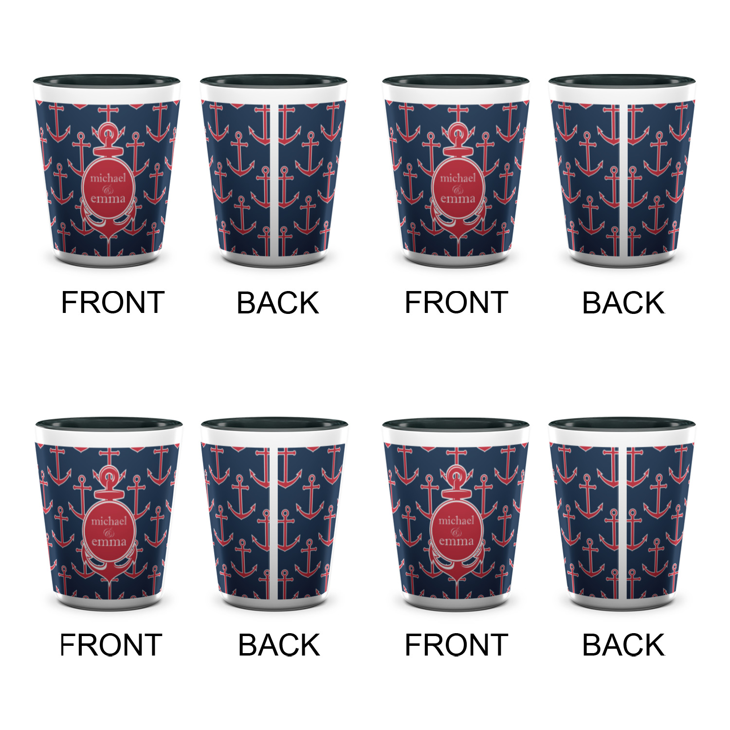 Made from ceramic these shot glasses are printed in full color with the design of your choice. These are a standard 1.5oz size and stand 2.25" tall. Available in a full white ceramic or a two-tone with a black color inside the shot glass. Buy a single or a set of 4, all of which can be designed separately to get you just what you want and need.