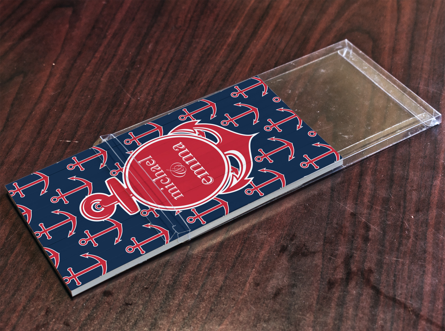 If you love anchors, then this design is for you. It is call all anchors for a reason! - Anchors in the background and a beautiful anchor for the label; and we have chosen to use couples personalization - you can change it to anything you like, monogram, name & initial or just a name - the choice is yours.
