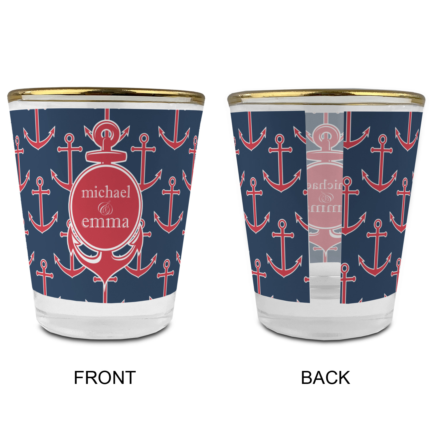 Coastal / Beach Style Designs for Glass Shot Glasses - 1.5 oz - with Gold Rim - Single