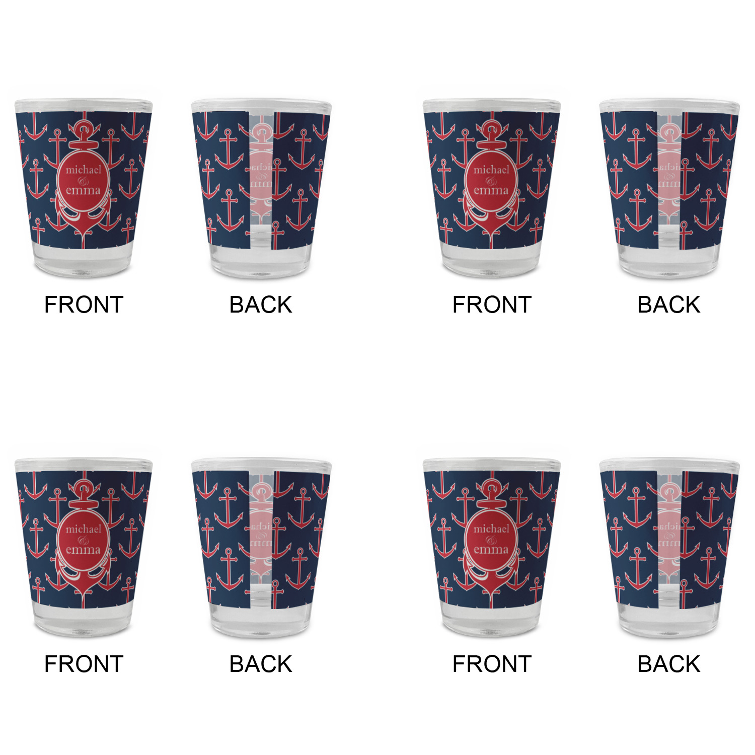 Made with frosted glass, these shot glasses are printed in full color with the design of your choice. They are a standard 1.5oz shot glass and are 2.4" tall. The print is wrapped around the shot glass in a full wrap and boldly displays your customization.