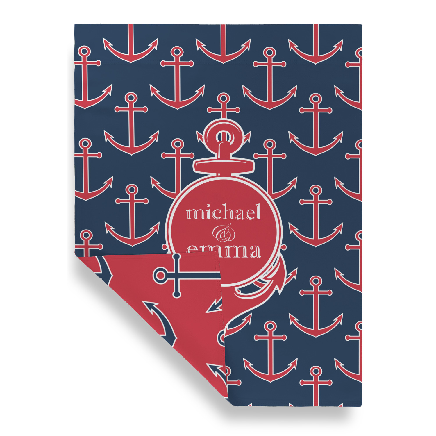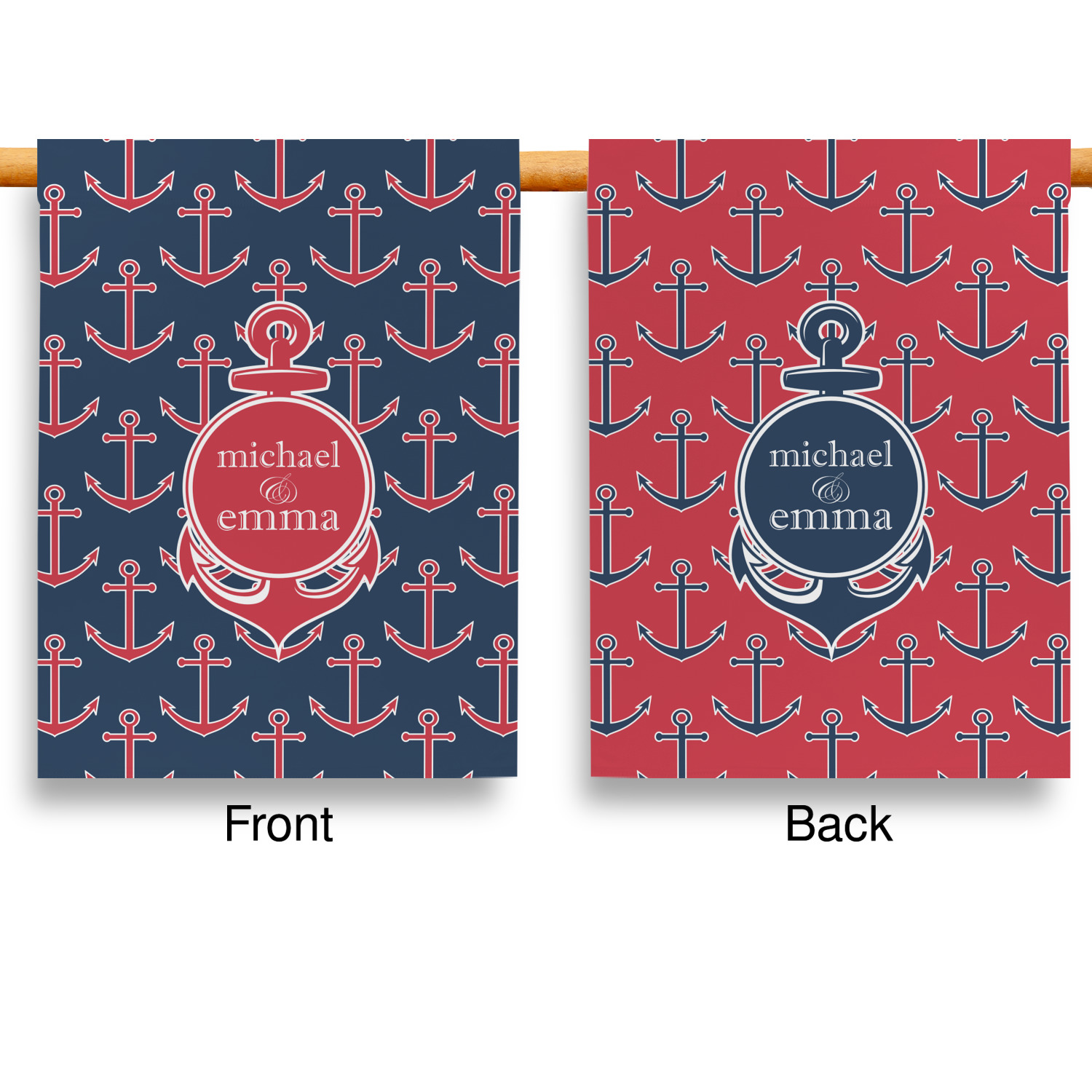 These custom garden flags are made of a durable, double-ply, polyester weave, allowing them to withstand the elements year round. The small flags measure at approximately 12 by 18 inches. The large flags measure out to 28 by 37 inches. You can order these decorative flags with your customization printed on the front only, or the front and back.