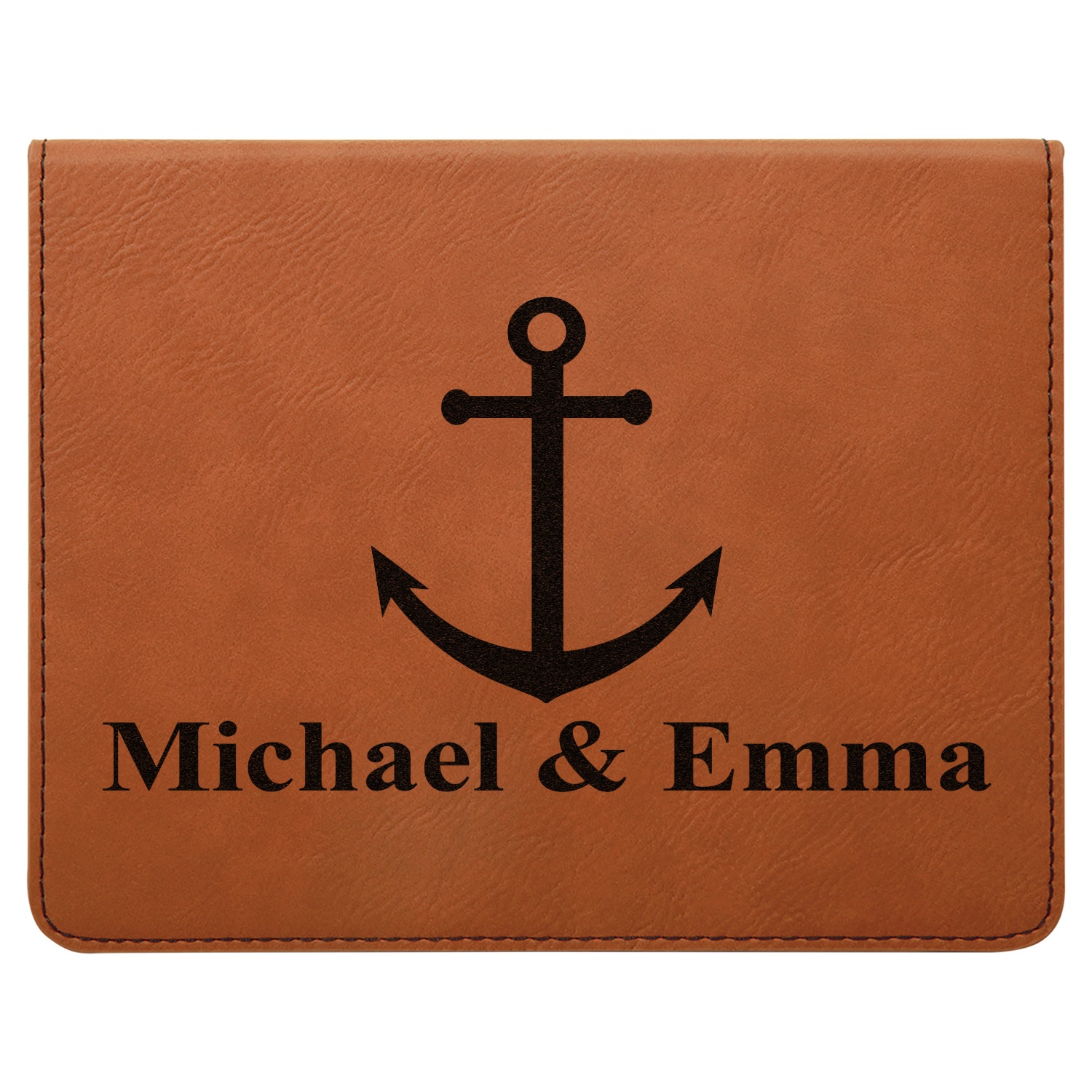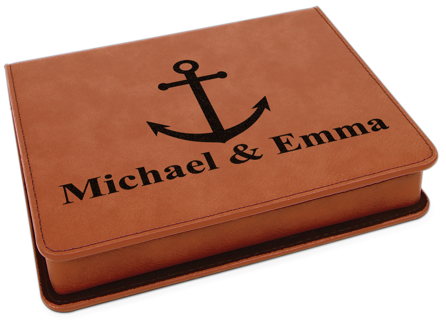 This set includes a wine stopper, pourer, drip ring, and a corkscrew! The exterior of the box is a gorgeous, cognac-brown leatherette, while the interior is covered in a black, velvety material. Four foam indentations, unique to the shape of the wine tool, are found at the bottom half of the box's interior. The tools fit snugly into each of their designated spots, and the foam material helps to protect the integrity of your tools. Each of the wine gadgets features a bamboo accent, with the location and style depending on the tool itself. We laser engrave your personalized design onto the lid of the box, which easily flips open and is secured closed by a small magnet. The wine accessories box measures at 7 by 5.5 inches in total.