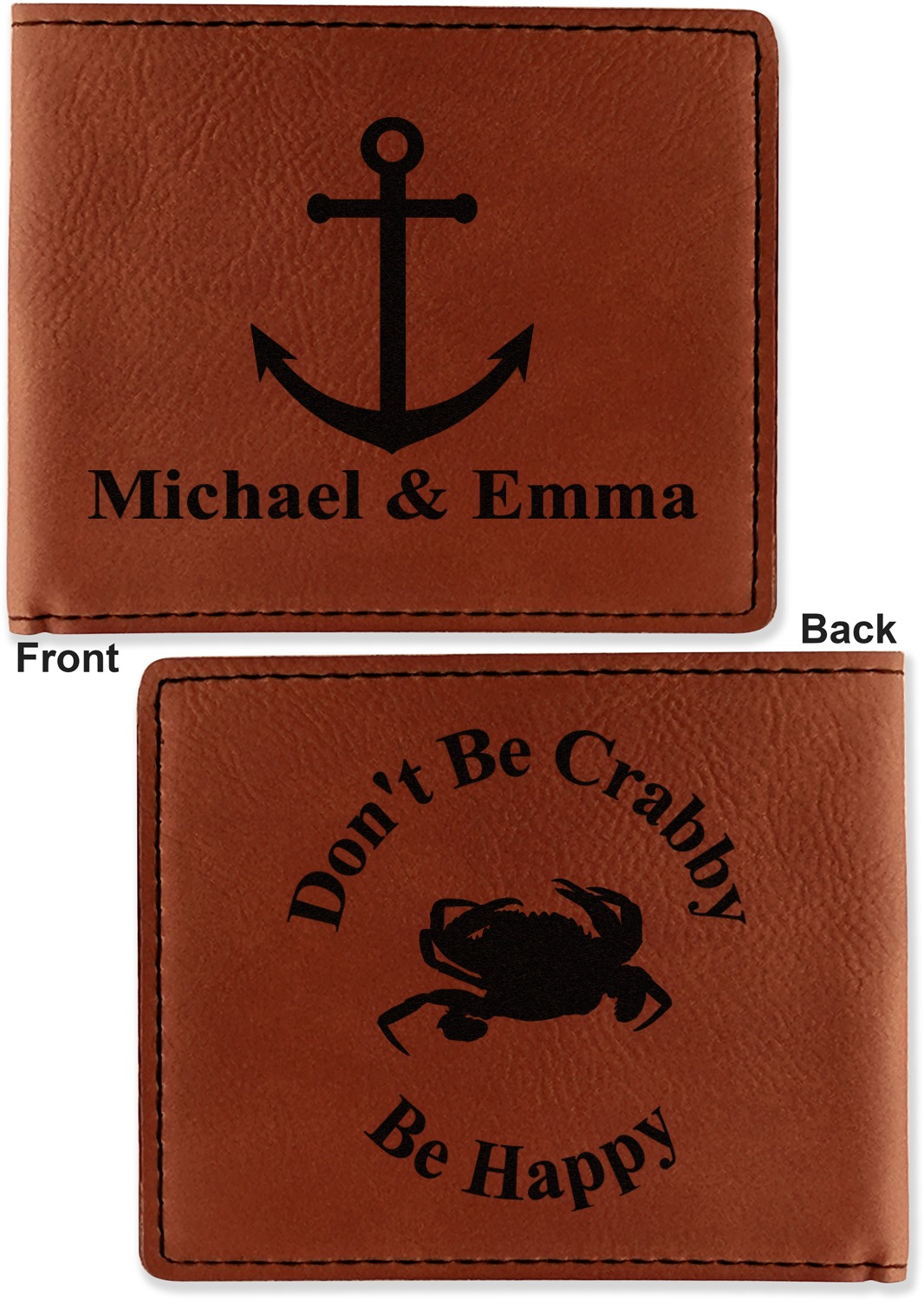 Your bifold wallet will be personalized by laser engraving, which will be a black color on the wallet. Choose a graphic, text, or monogram to personalize your wallet. There are thousands of choices in our design center.
