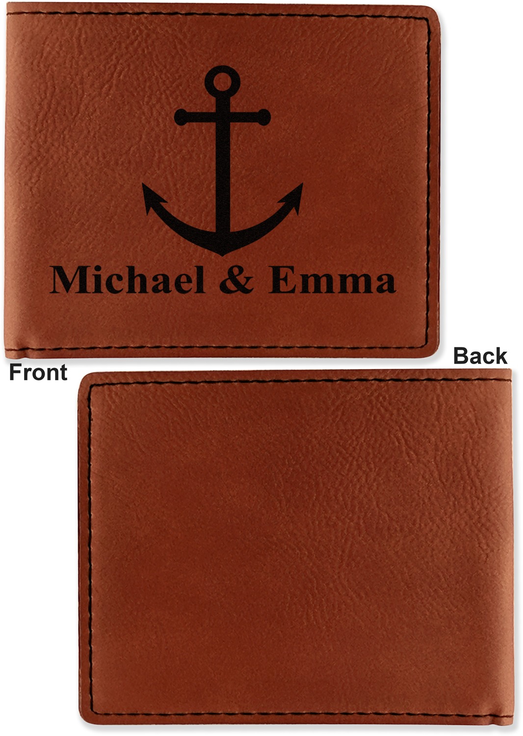 Your bifold wallet will be personalized by laser engraving, which will be a black color on the wallet. Choose a graphic, text, or monogram to personalize your wallet. There are thousands of choices in our design center.