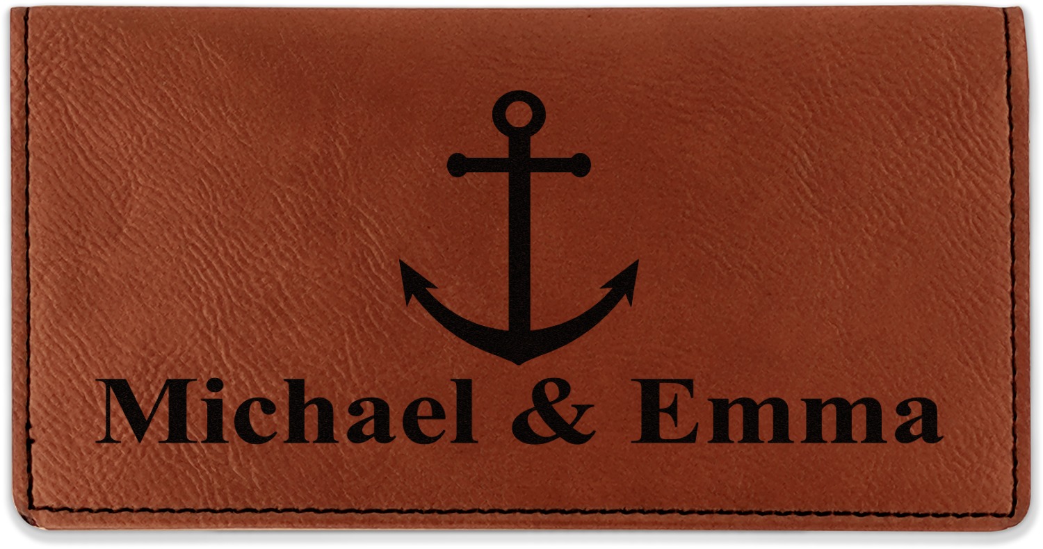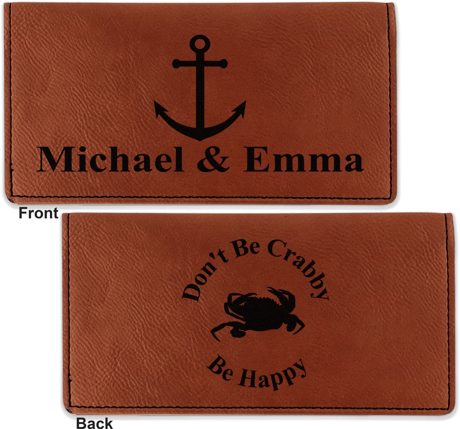 Go into our design center to start personalizing. Your checkbook cover will be laser engraved, making the graphic or text a black color. Choose a fun saying, monogram, or font to go on your checkbook cover. You have the opportunity to do it double or single sided.