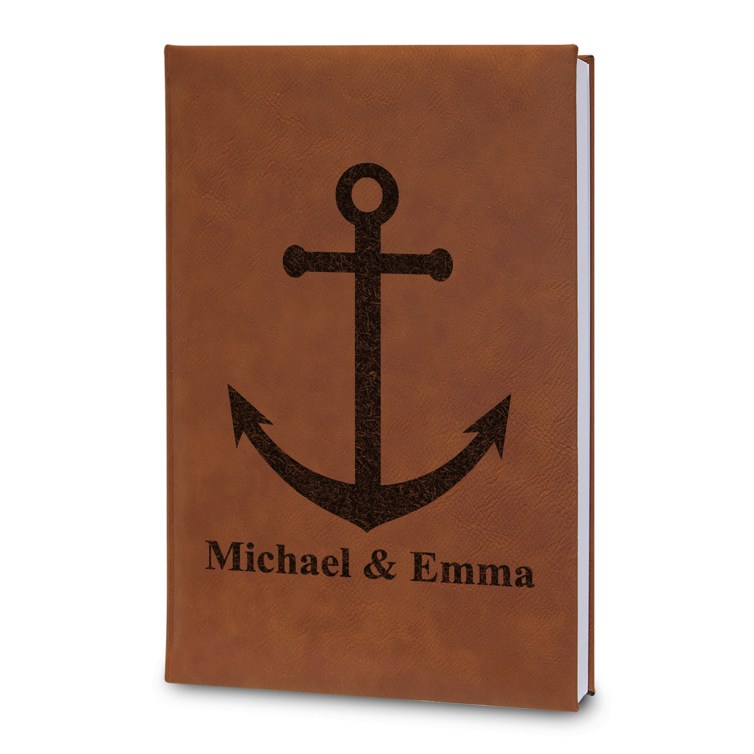 These personalized journals are made from a high quality, cognac brown leatherette that has a rich feel in your hands. The journal notebook features 112 pages of lined paper, and a black, ribbon bookmark to keep your place when closed.