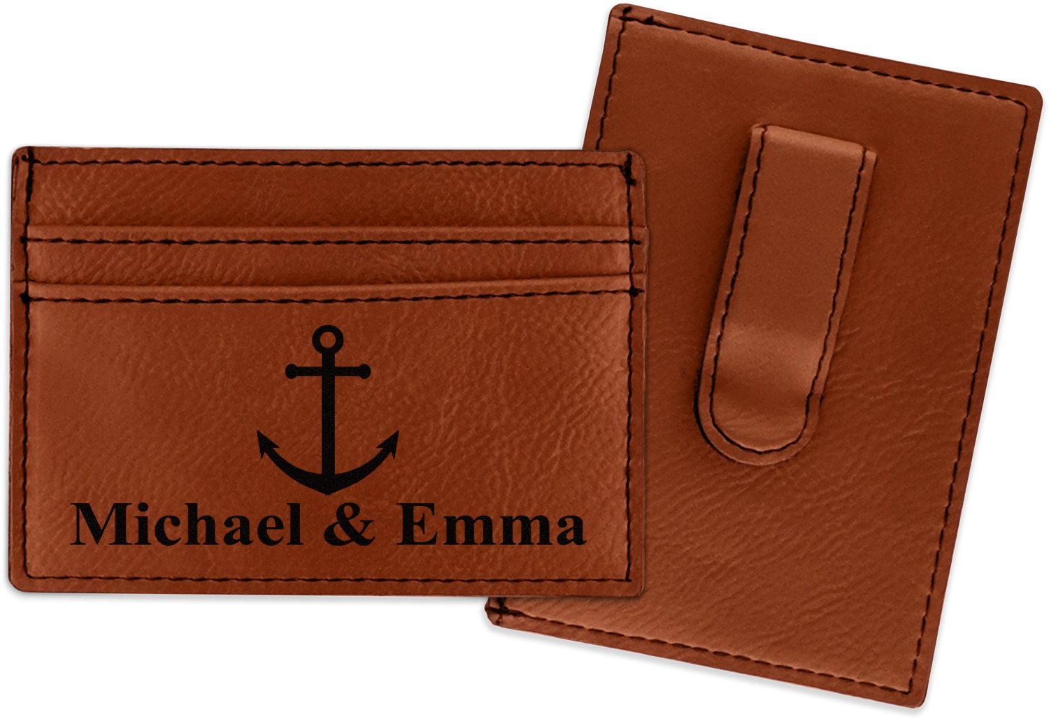 Made from a smooth brown leatherette material, these money clip wallets are the perfect accessory. They measure at approximately 4" x 2.75". On one side there is a money clip where you can slip in your cash. On the other side are three card slots for an ID and credit card or two. The money clip wallet will be laser engraved with your design on the side with the credit card slots. The graphic will come out as a black color.