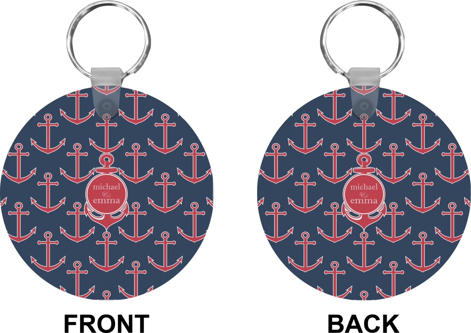 Our personalized keychains attach to the included metal, split key ring with a plastic, removable snap. Since a metal ring is included with your purchase, you have the liberty to keep your keys together on the ring, with or without your unique keychain. We offer this keychain in three different shapes: circle, heart, or diamond. We print your personalized design(s) on both sides of the key chain, and the surface has a glossy, reflective finish that only emphasizes your design. Each keychain is approximately 2.25 by 2.25 inches.