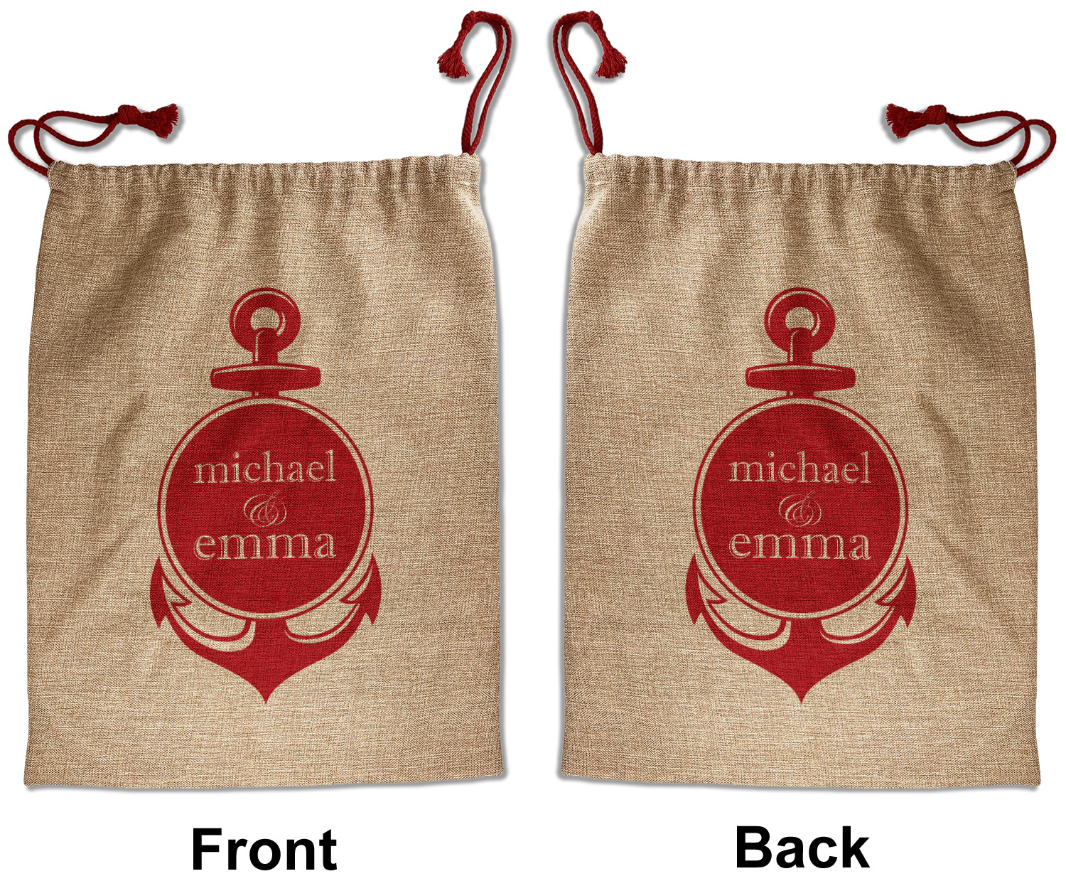 Our Santa sacks print your design on the burlap material giving it a nice rustic, natural design! The burlap material is also machine washable and wrinkle-free, so feel free to fold and store out Santa bags until the next time you need it! Secure your gifts with our red accent drawstring ties at the top of the sack so the mystery of your gift stays a surprise until Christmas day. We offer two types of printing- one side partial print or double-sided partial printing. Design and personalize your own Santa sack in time for the holidays!