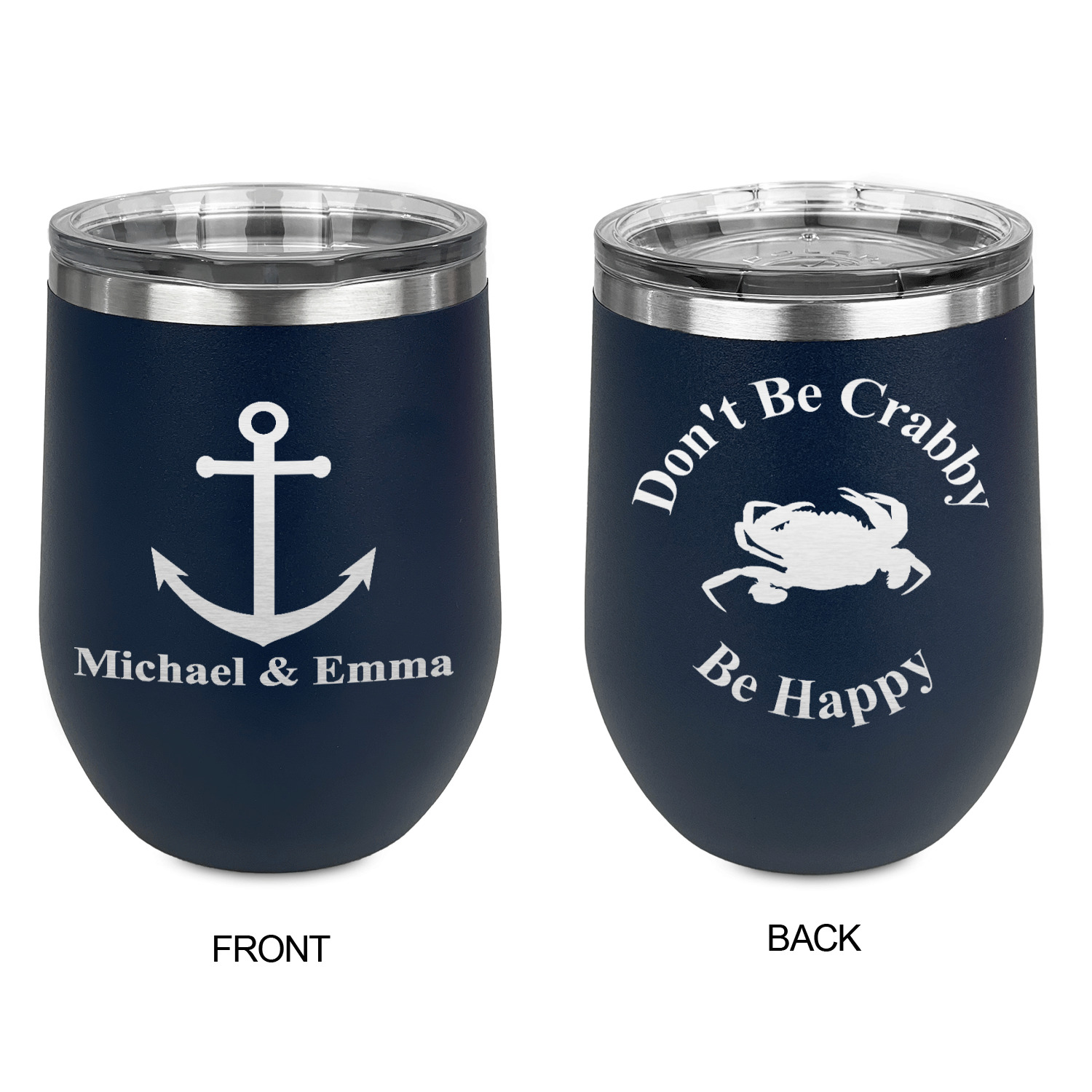 Coastal / Beach Style Designs for Stemless Stainless Steel Wine Tumblers - Navy - Double-Sided