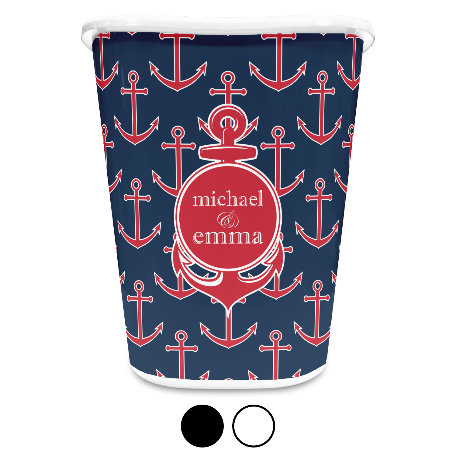You can choose to purchase these decorative wastebaskets in either a white or a black color that will show on the base and the upper rim. Your customization is printed on a high-gloss, fine-quality vinyl adhesive, and you can choose to either have this adhesive applied to one side only or to both sides. As such, this plastic wastebasket can be single-sided or double-sided, depending on your creative vision. Your customization is printed using durable inks, making the design waterproof and resistant to fading over time.