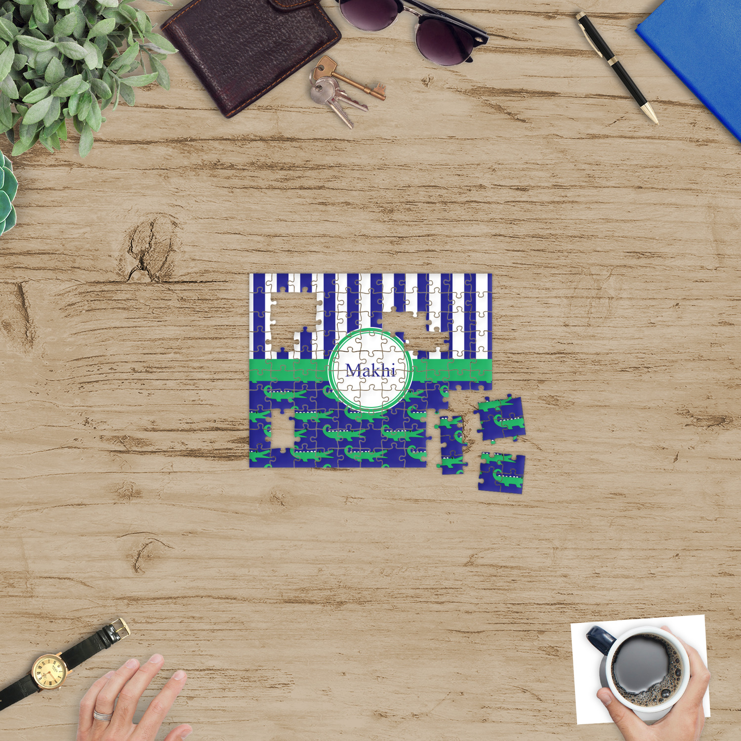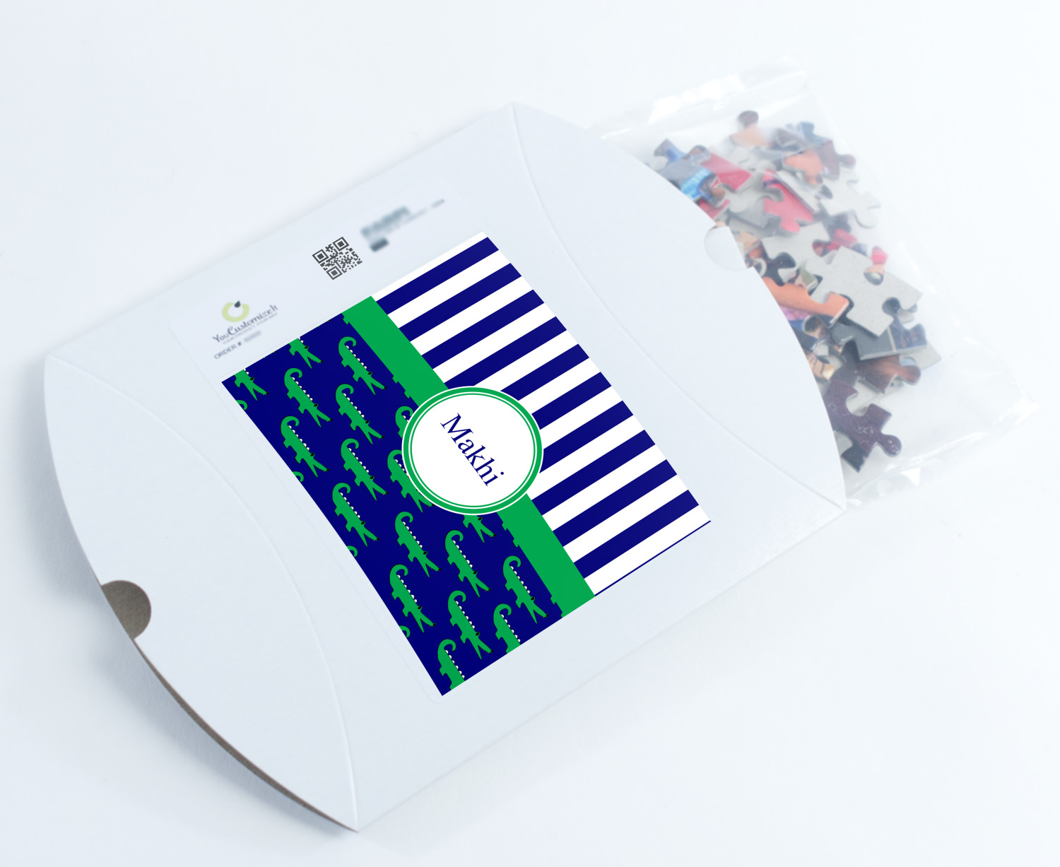 You can also upload your logo or art that you or your kids drew. To create more challenging jigsaw puzzles, you can create a pattern from with your logo or artwork. You can also add other elements such as text or personalization.