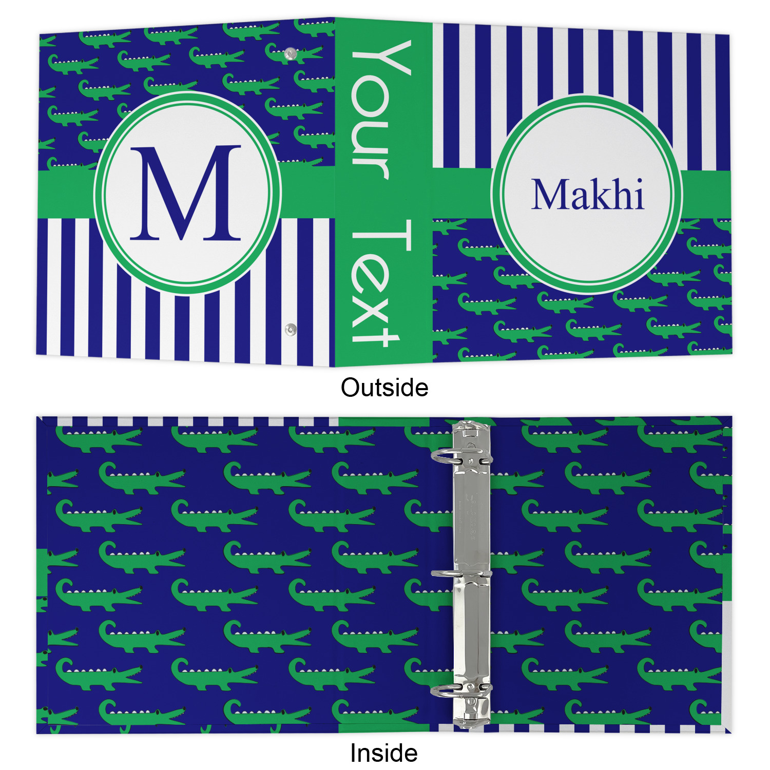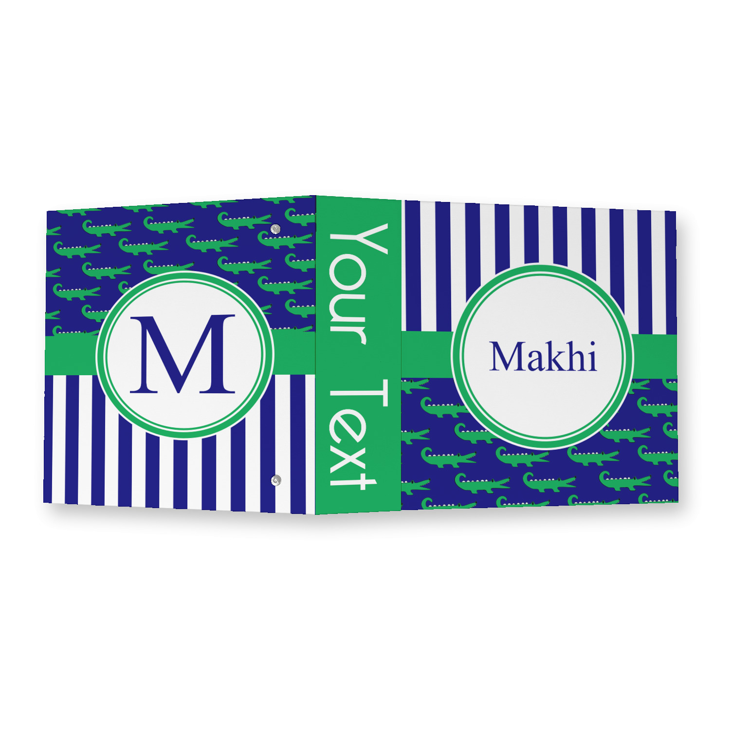 Made from a sturdy cardboard base with a full high quality canvas textured vinyl wrap with the design of your choice. Unlike our standard 3-ring binder with the full wrap design your artwork wraps from the front and back and into the inside of the binder.