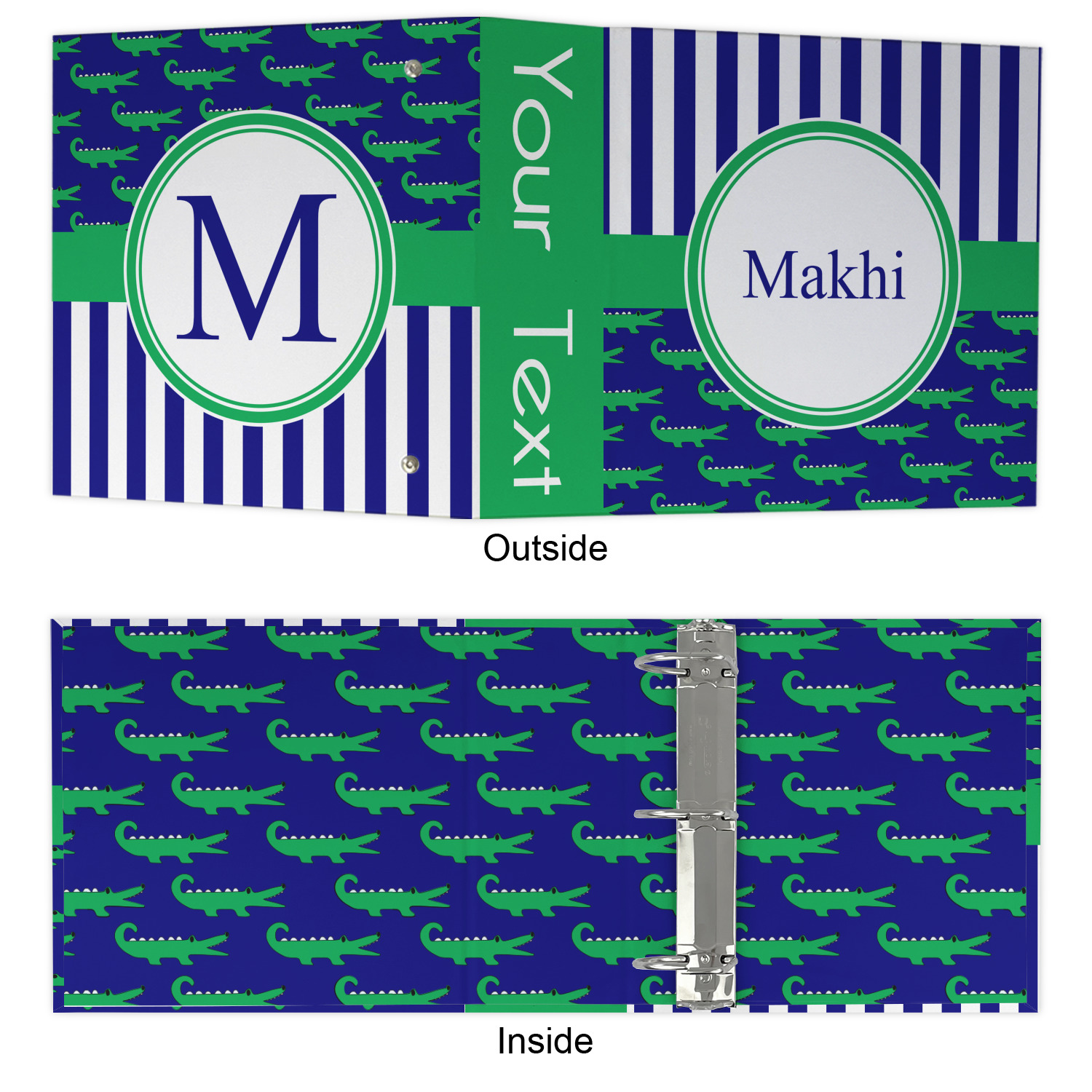 The outside is printed in 3 sections - front cover, spine and back cover - while the inside is printed in a full single print of your choice. The inside boasts a high quality nickel plated binder mechanism with a trigger opening function and is secured to the cardboard binder with posts and screws.
