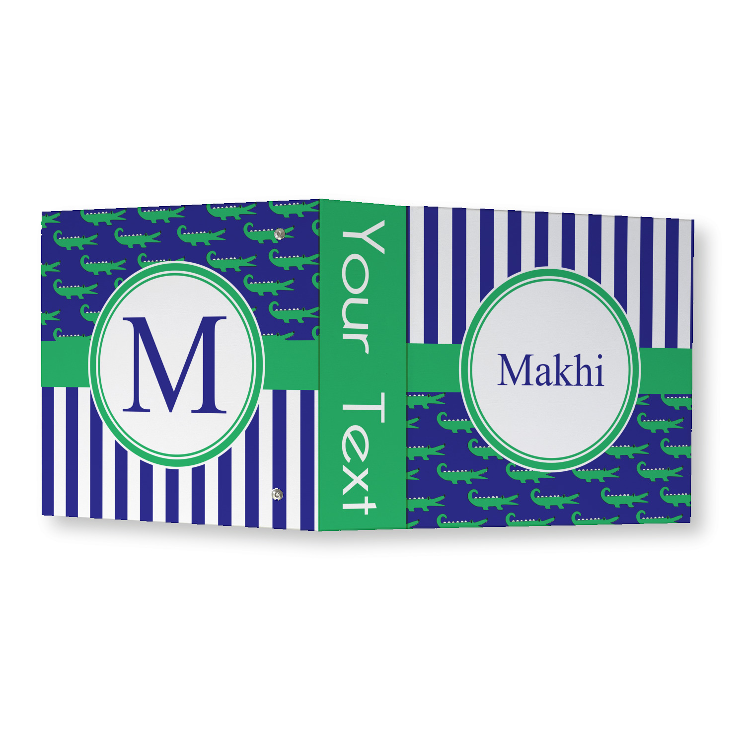 Made from a sturdy cardboard base with a full high quality canvas textured vinyl wrap with the design of your choice. Unlike our standard 3-ring binder with the full wrap design your artwork wraps from the front and back and into the inside of the binder.