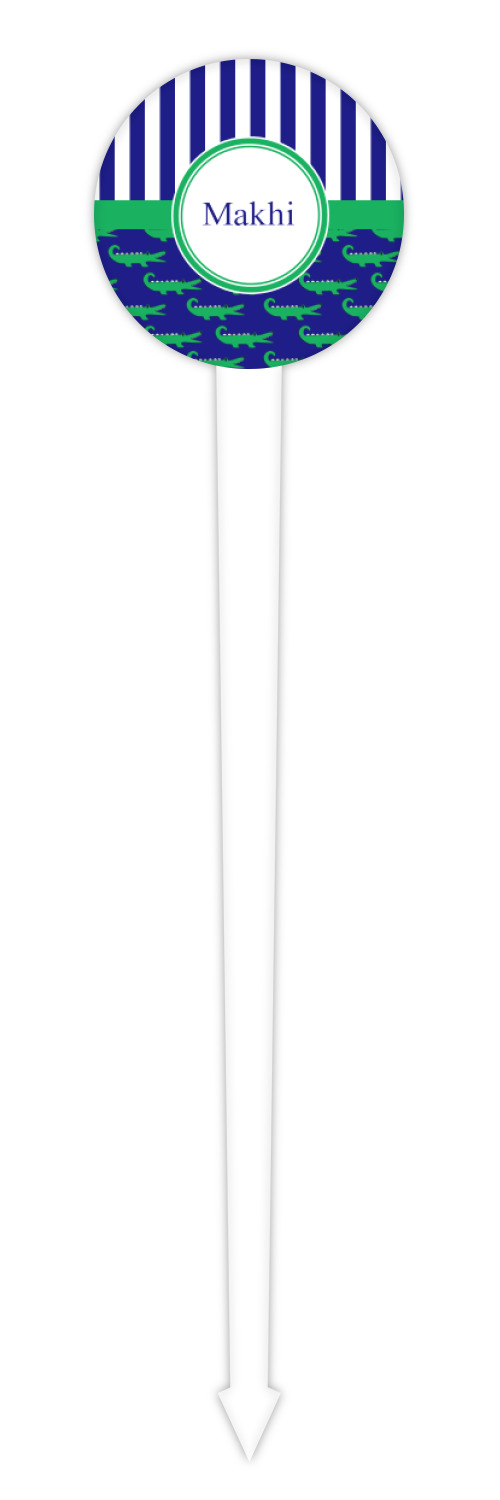 These are the sweetest alligators around! Our adorable green alligators pop and come alive on a blue background. To coordinate the alligator design a bold blue and white striped pattern is added to the top.