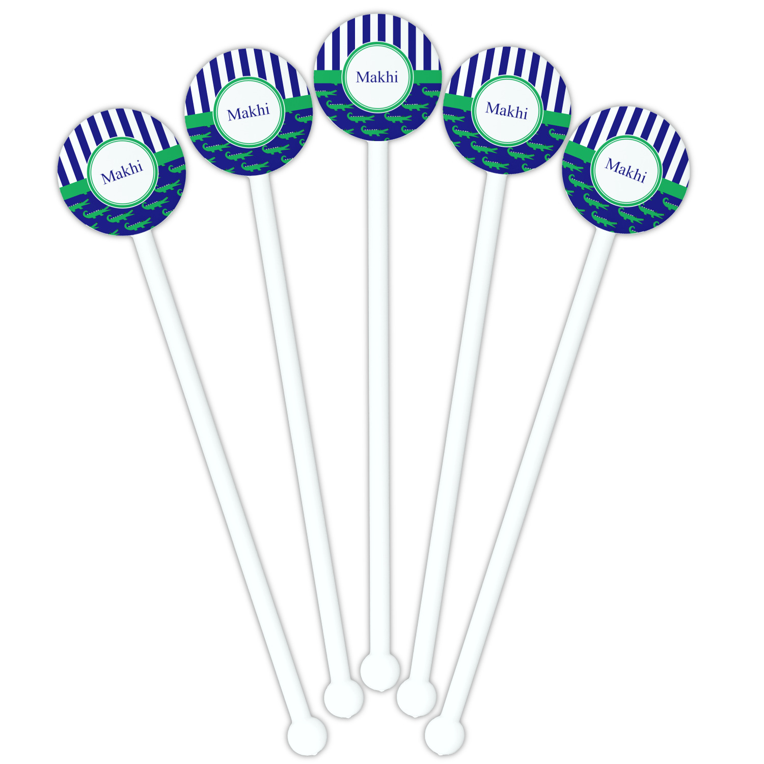 These are the sweetest alligators around! Our adorable green alligators pop and come alive on a blue background. To coordinate the alligator design a bold blue and white striped pattern is added to the top.