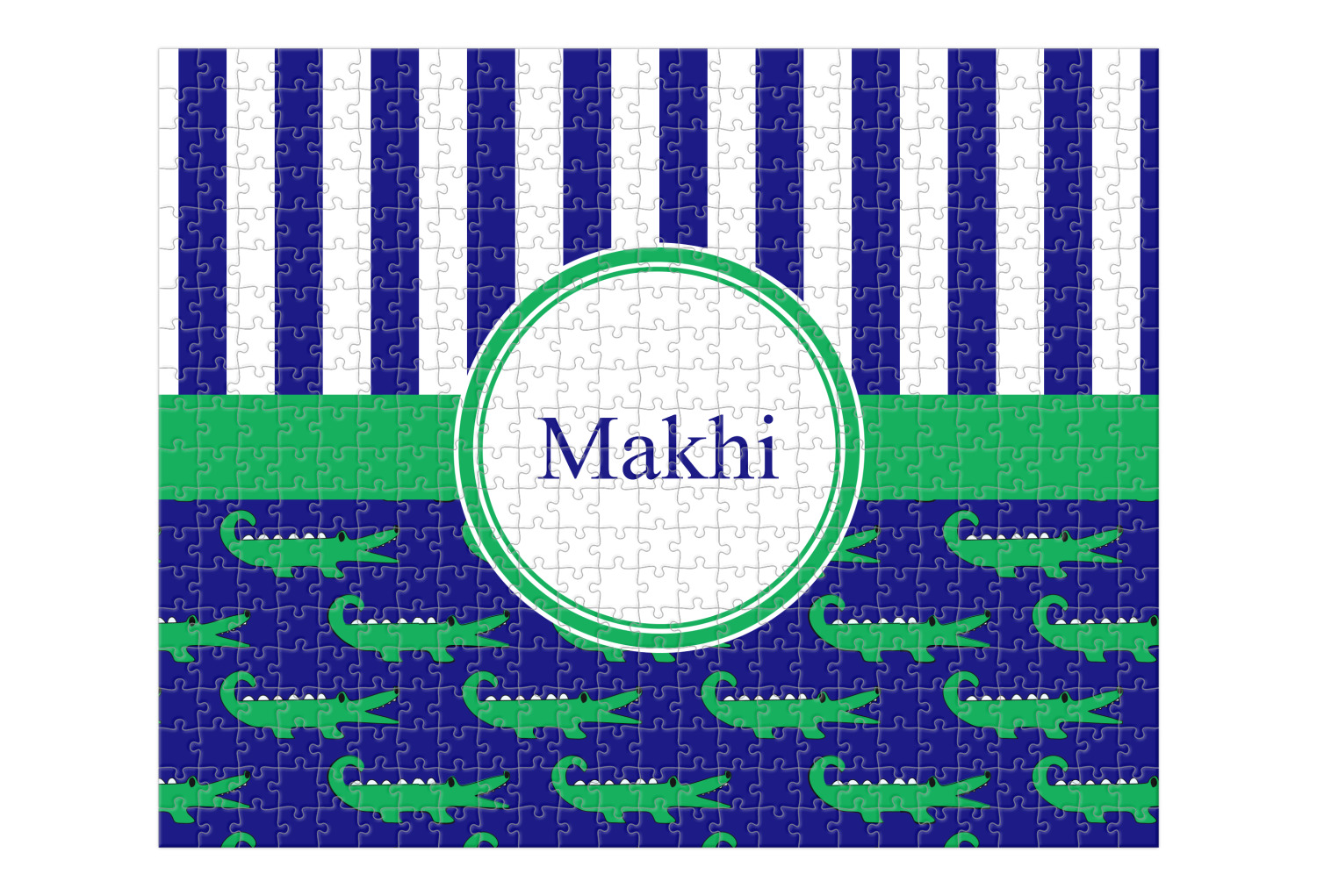Depending on the look you are trying to achieve, you can add; a thematic pattern or background, with a photo in a frame and text or personalization to your puzzle. Basically if you can imagine it, you can design it!