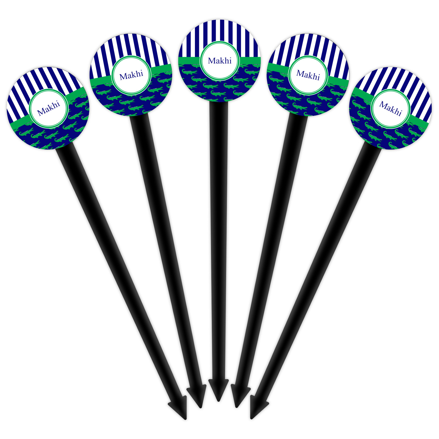 Our plastic cocktail picks have a round disc on top that is printed in full color with your event theme, colors, your logo, your photo, names, initials, monograms etc.