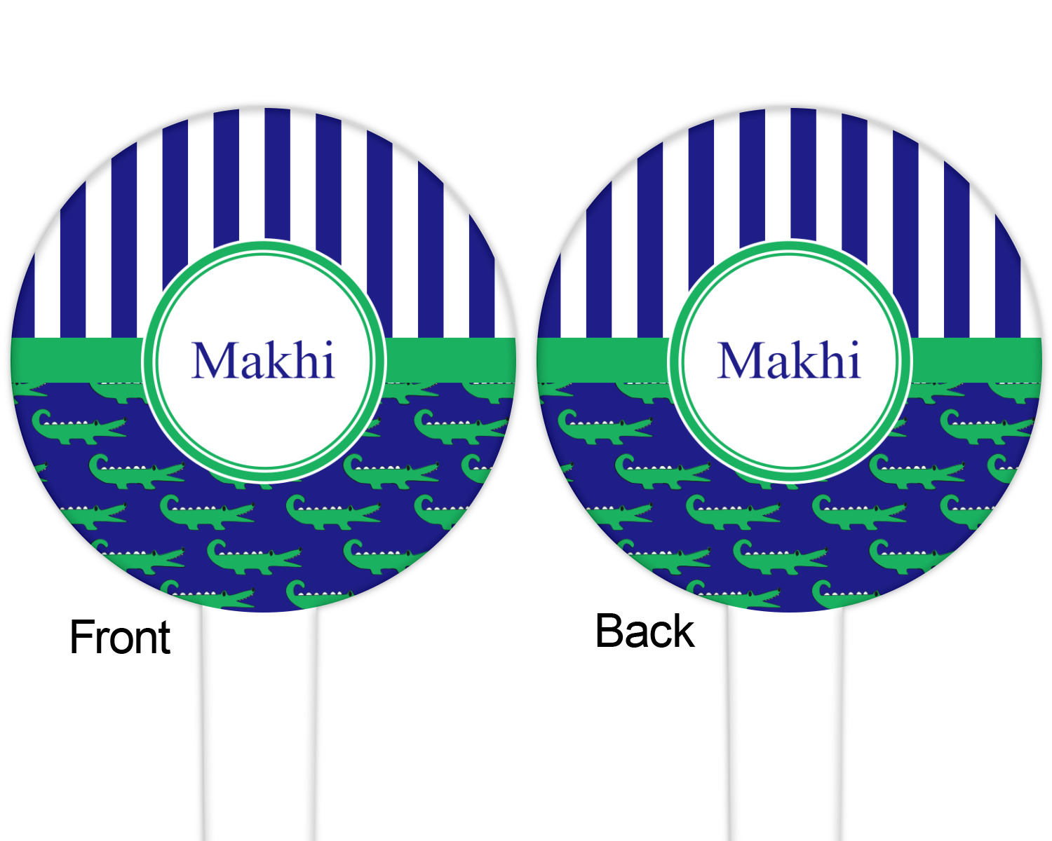 The round disc on these food & drink picks can be customized and personalized to your specifications. Your image will be printed in full color on one side or both sides. You can use the same image on both sides or use two different images.