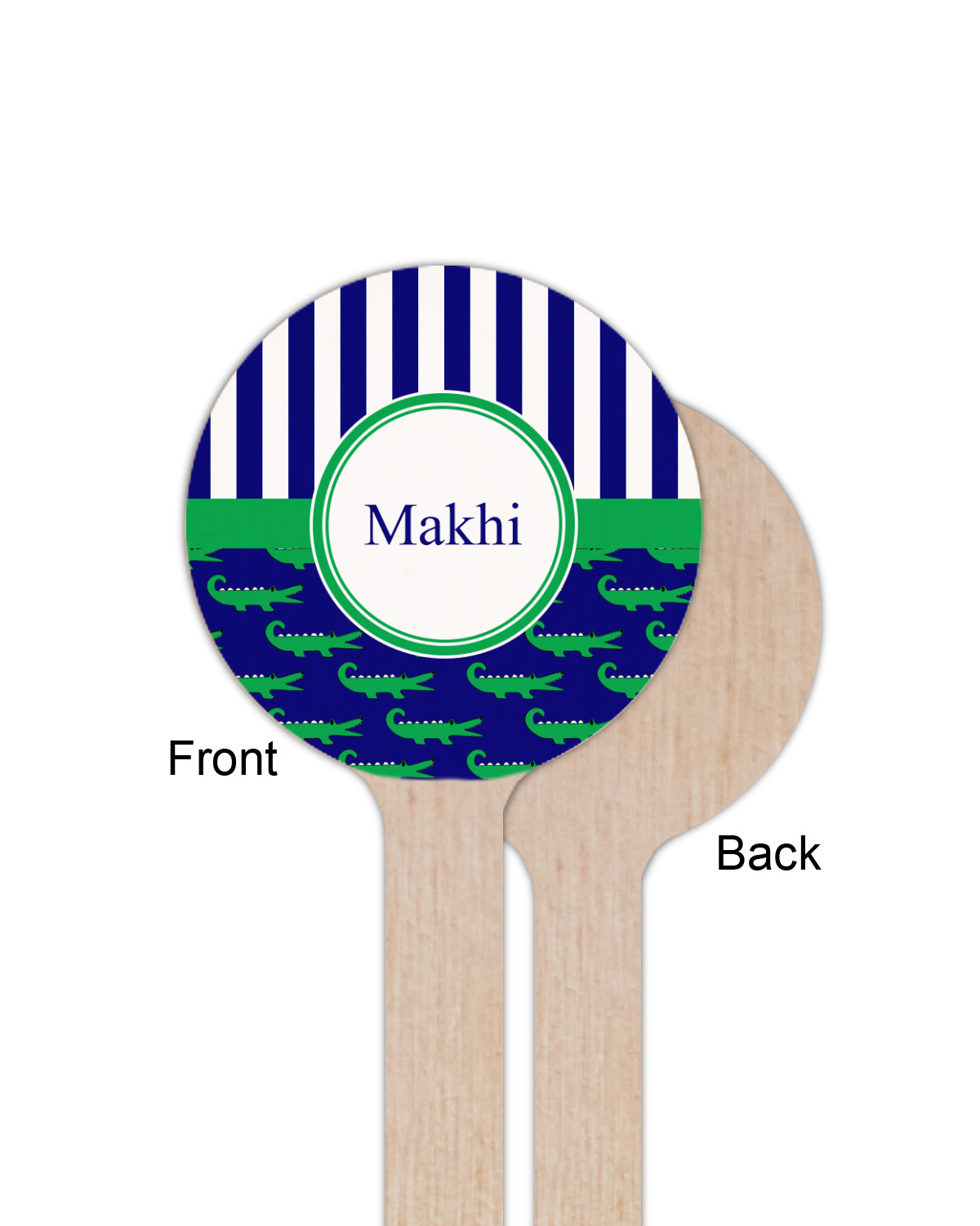 These are the sweetest alligators around! Our adorable green alligators pop and come alive on a blue background. To coordinate the alligator design a bold blue and white striped pattern is added to the top.