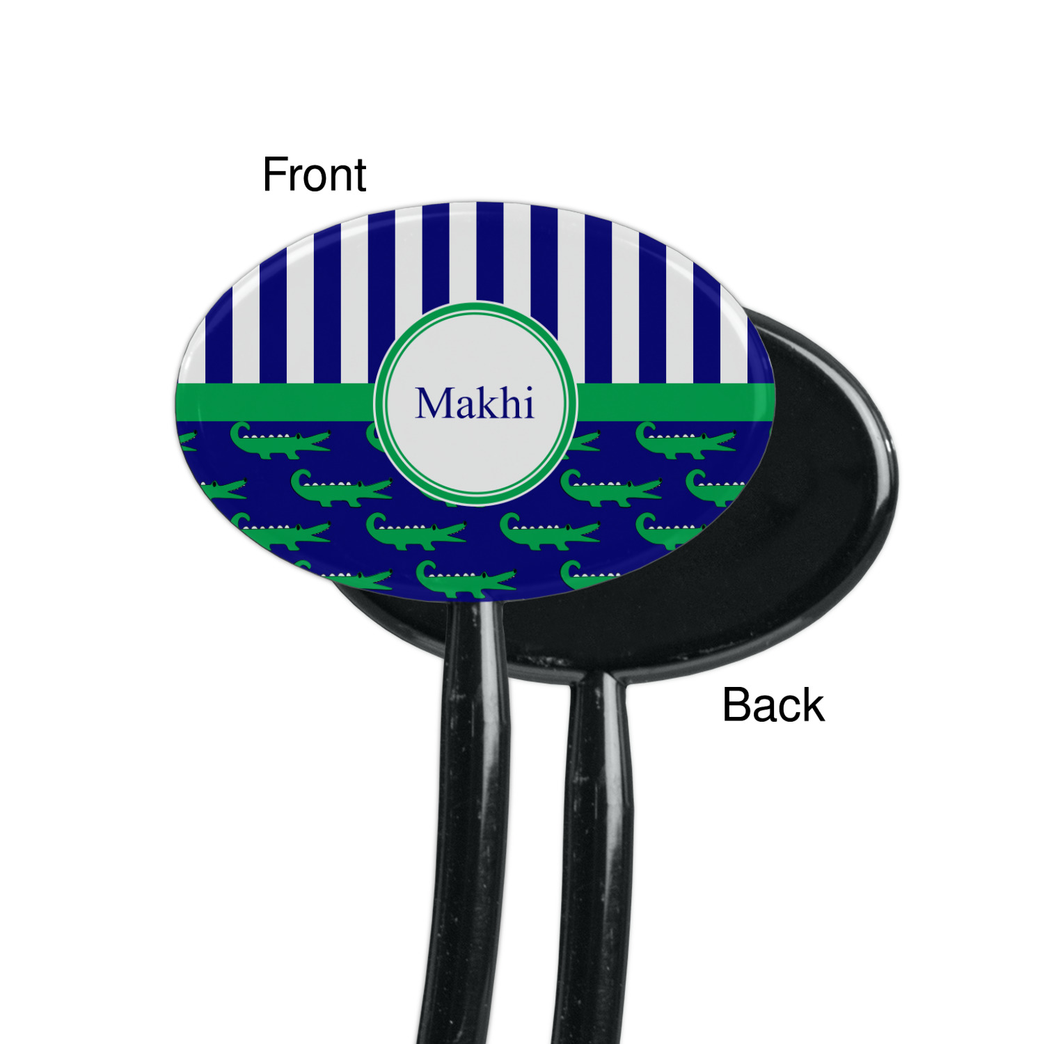 These are the sweetest alligators around! Our adorable green alligators pop and come alive on a blue background. To coordinate the alligator design a bold blue and white striped pattern is added to the top.