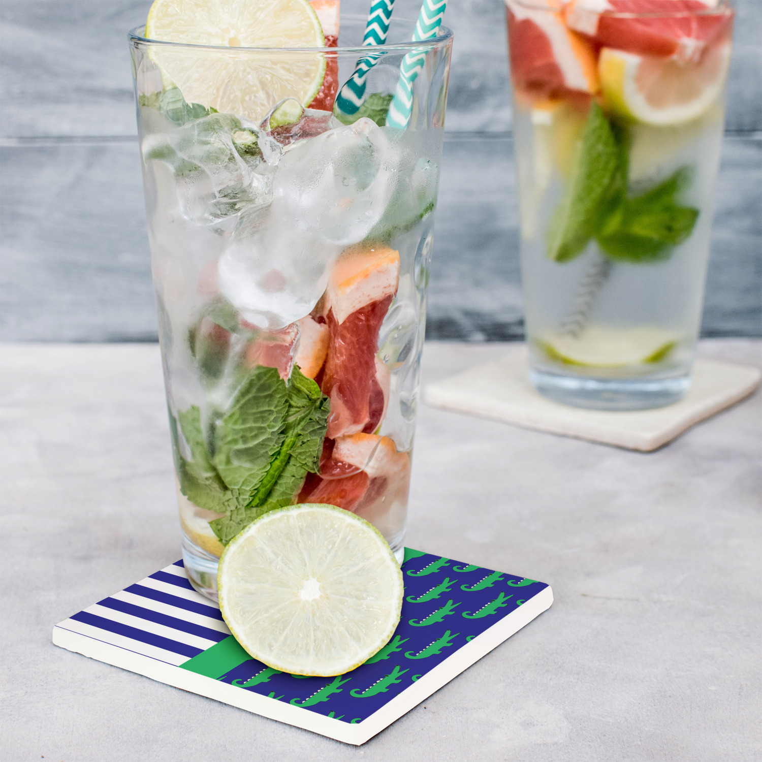 These customized stone coasters are perfect for use with beverages that are served in drinkware that "sweat". When cocktails, sodas, iced tea, water, etc. are served with ice in a regular glasses (non insulated glasses), they release condensation that drips down the outside of the glasses.