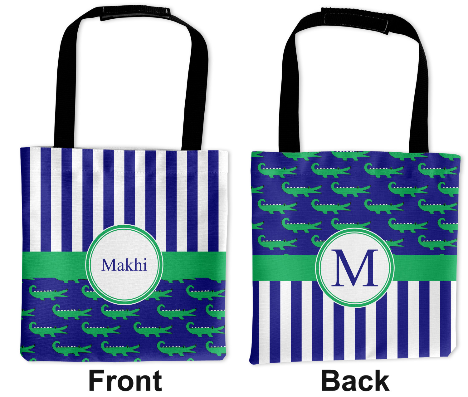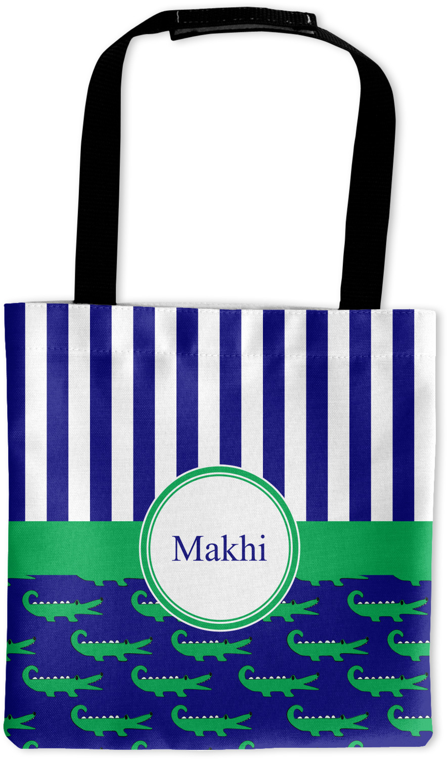 These are the sweetest alligators around! Our adorable green alligators pop and come alive on a blue background. To coordinate the alligator design a bold blue and white striped pattern is added to the top.
