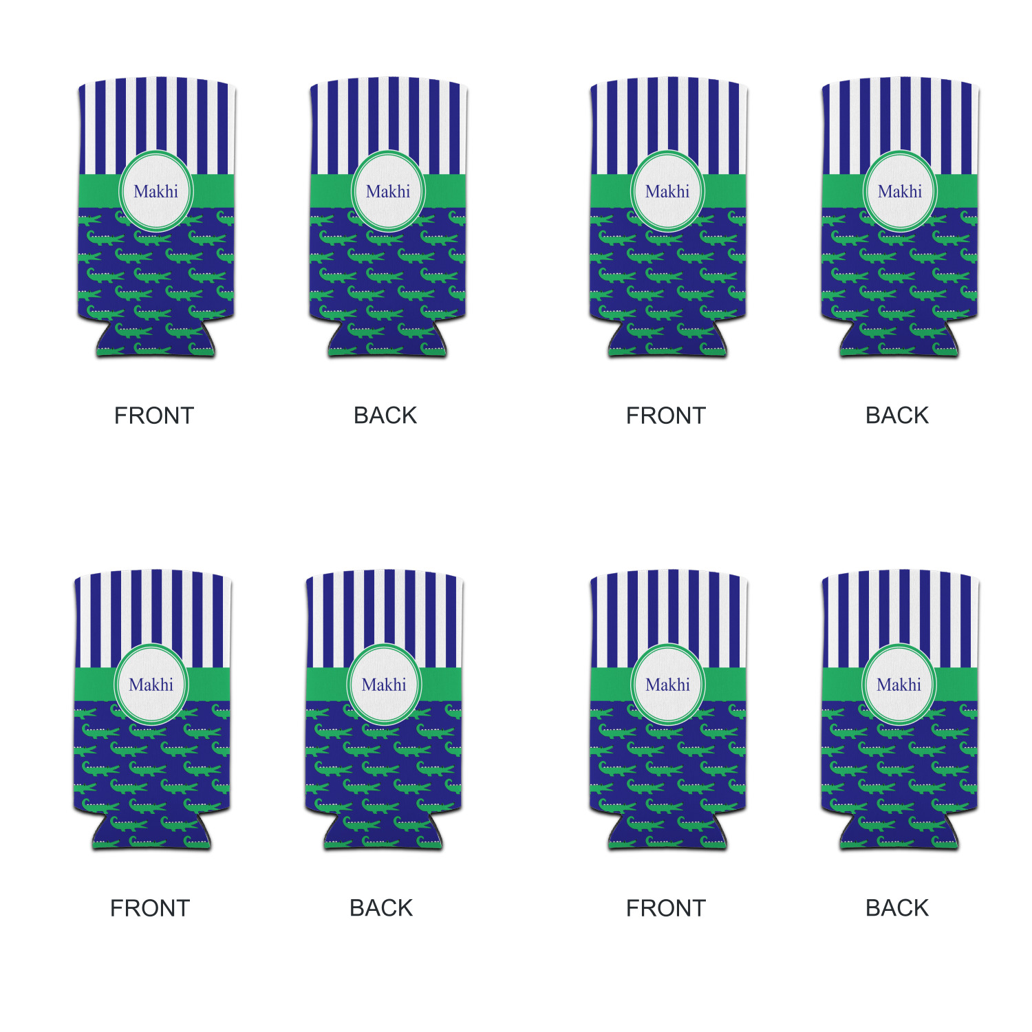 These are the sweetest alligators around! Our adorable green alligators pop and come alive on a blue background. To coordinate the alligator design a bold blue and white striped pattern is added to the top.