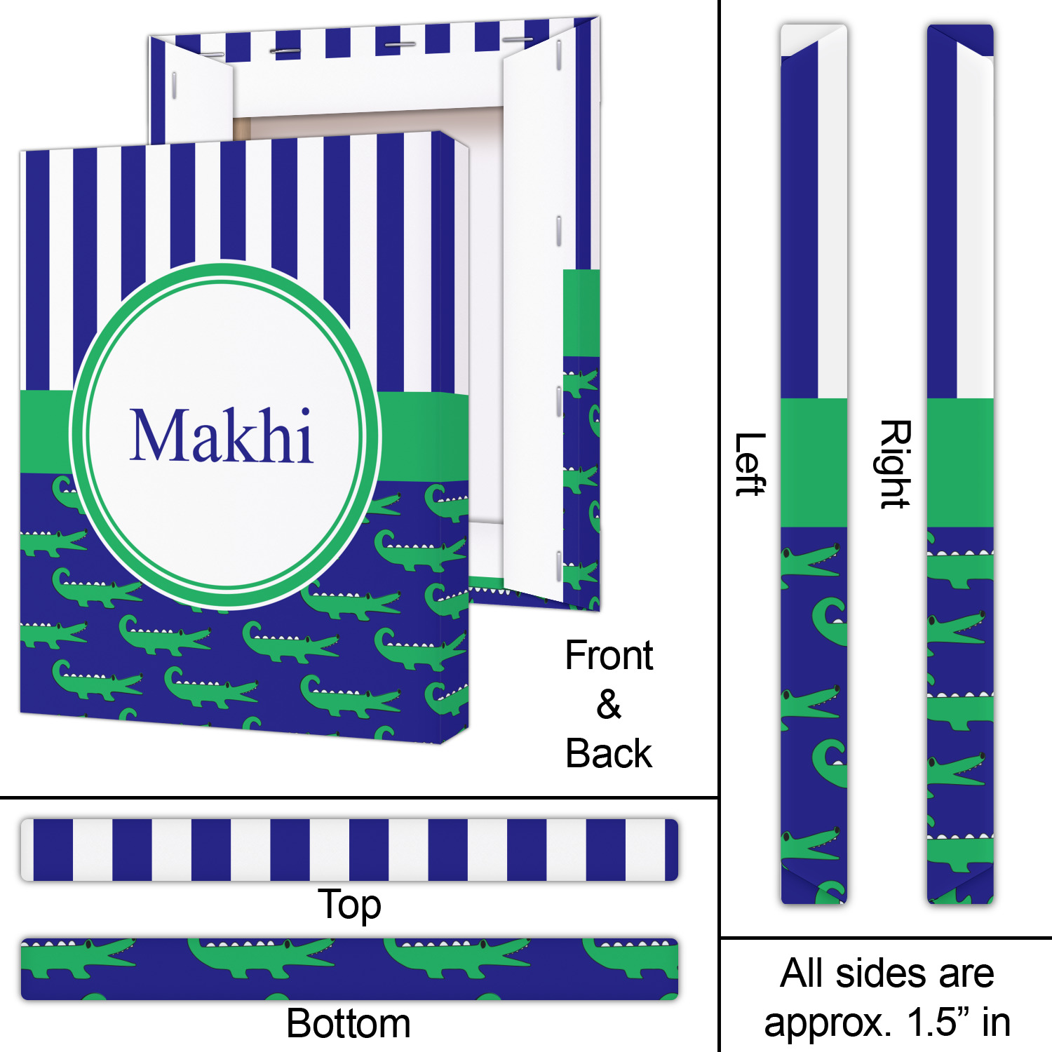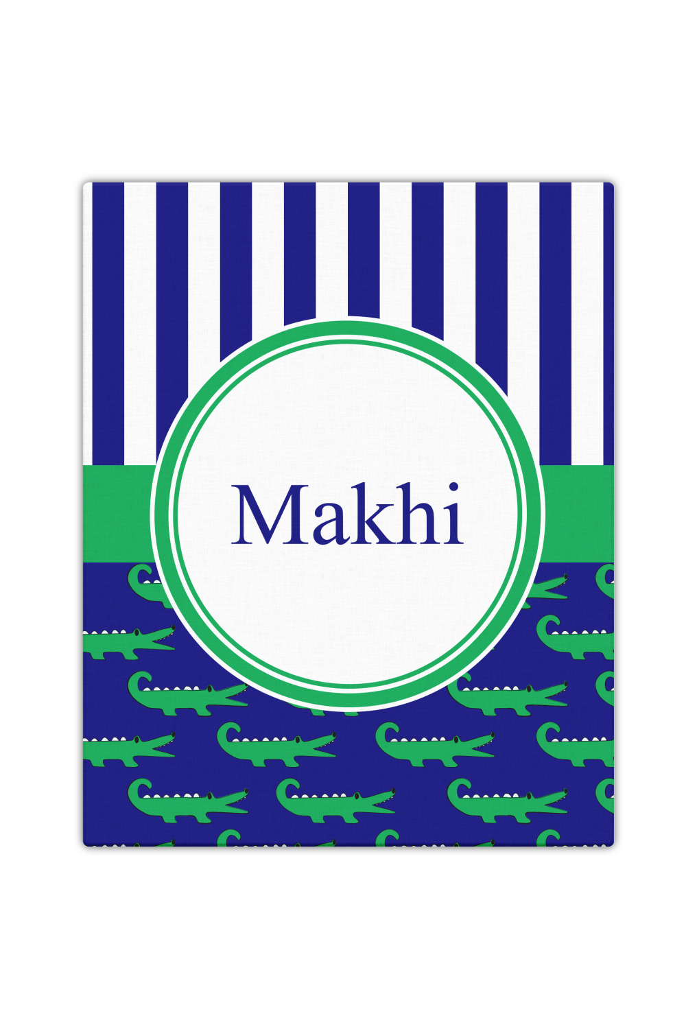 These are the sweetest alligators around! Our adorable green alligators pop and come alive on a blue background. To coordinate the alligator design a bold blue and white striped pattern is added to the top.