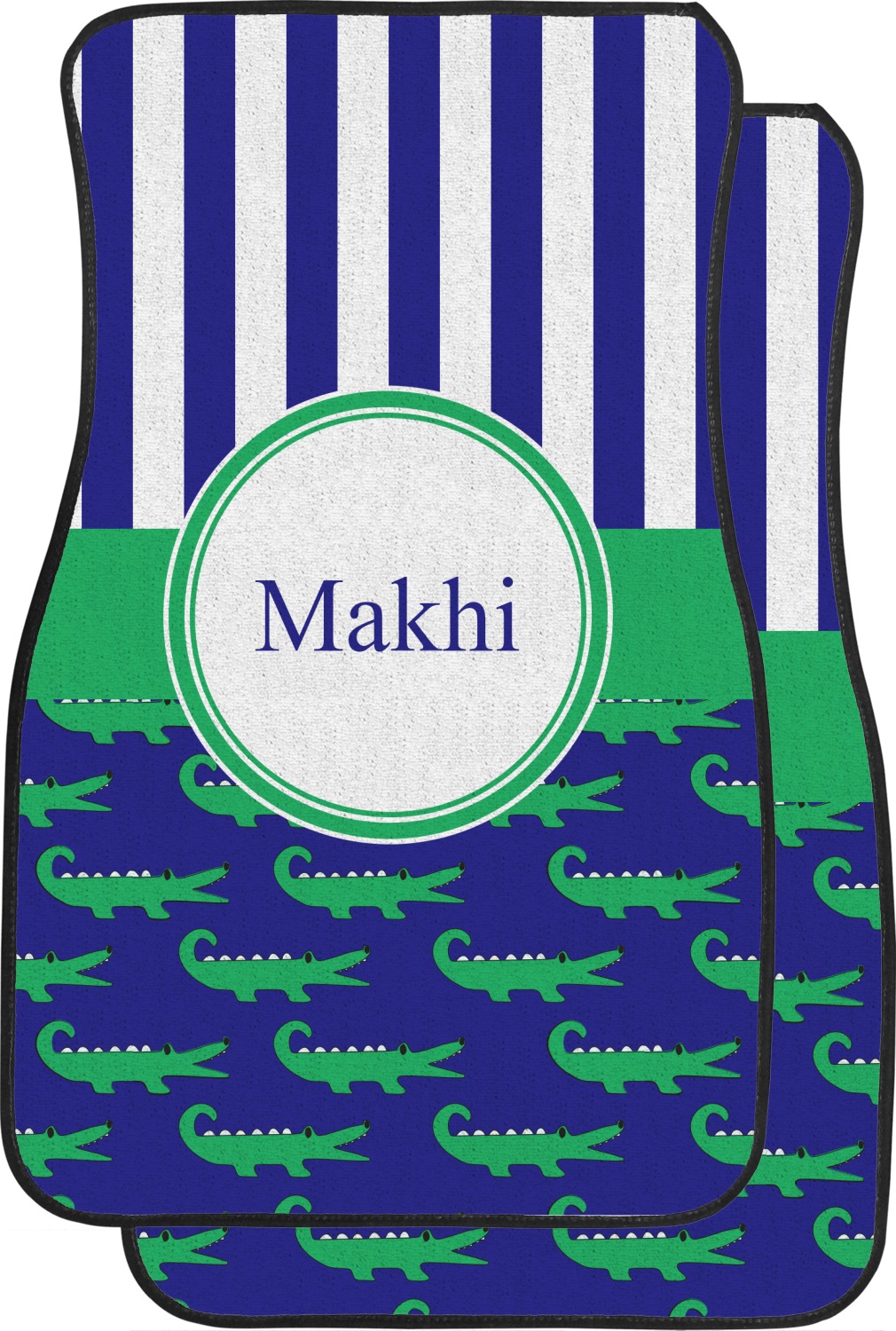We craft our auto floor mats mats from polyester, apply a black finish to the edges, and lined at the bottom to prevent slippage. These mats protect your floors from grass, mud, and any accidental spills. We display your personalized design on the front face of each mat. The sizes of these car floor liners are standardized to provide a versatile fit for all vehicles. The front rows car mats measure at 17 by 26.5 inches, while the back rows measure at 17 by 13 inches. We sell three packages of car floor mats. You can purchase a pair of front row car mats, a pair of back row car mats, or a set of front row and back row car mats. To make an informed purchase, we recommend measuring the surface area of your car floors.