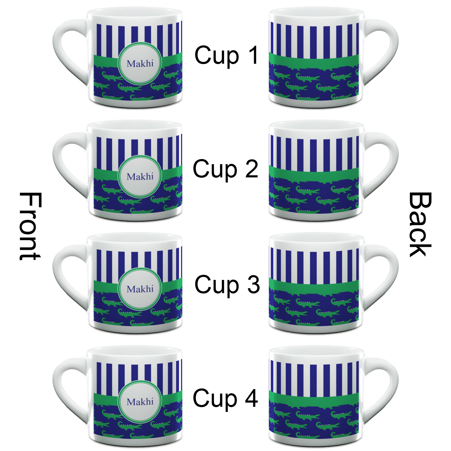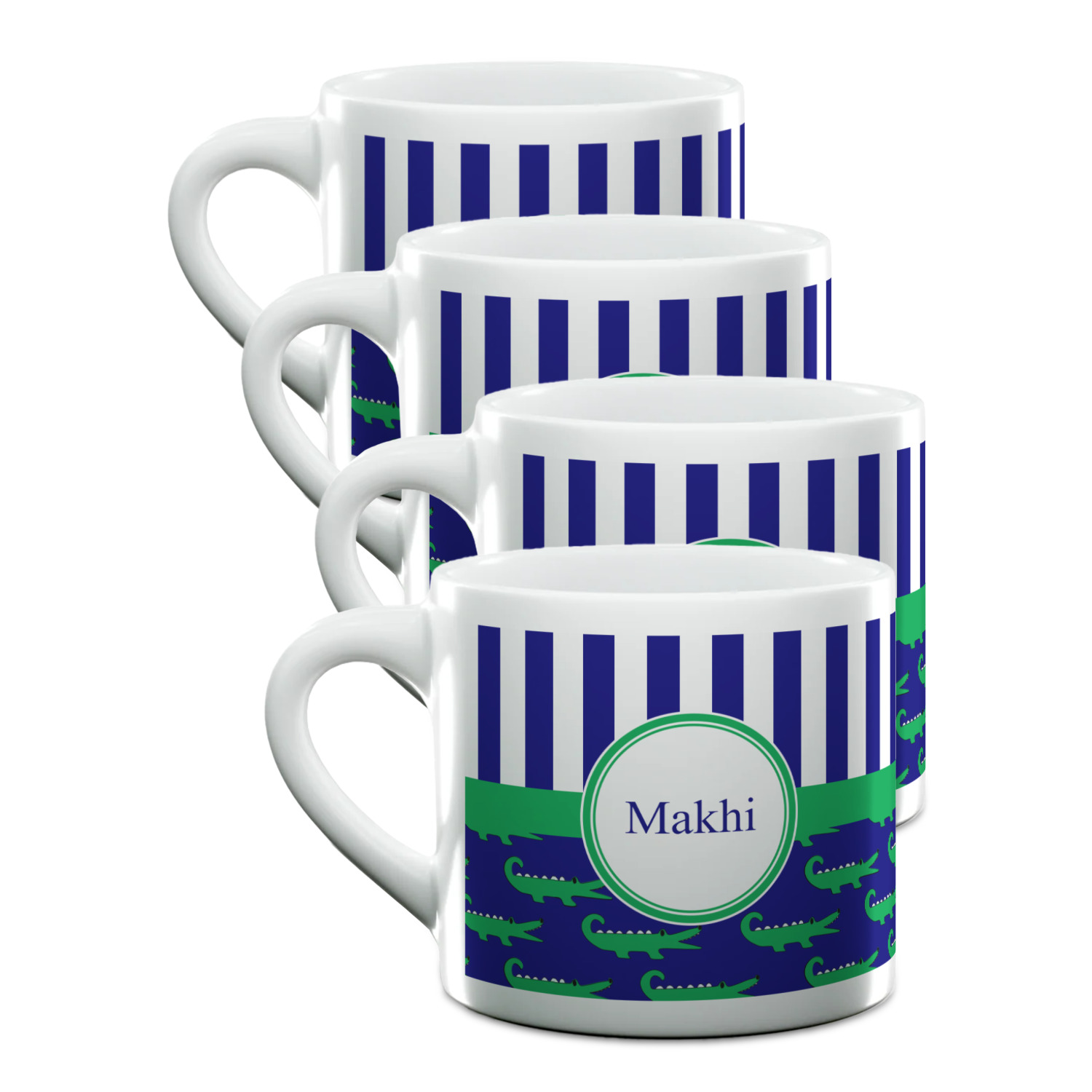 Each of our espresso mugs is a ceramic material sure to keep your drink warm. Personalize one cup for yourself, or order a set of 4! Its the perfect little gift for any coffee lover! We carry two sizes for you to personalize - 3 oz. (approx. 3.25" x 2.325" x 2.625") or 6 oz. (approx. 4" x 2.9" x 2.9"). Our 3 oz. mug is perfect for that single shot espresso while our 6 oz. mug can be your next favorite cappuccino cup holding two shots of espresso!