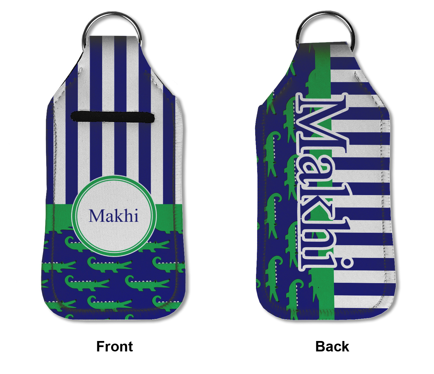 Each hand sanitizer holder comes with its own empty travel-sized, refillable hand sanitizer sure to fit snug in your customized sanitizer case! Our hand sanitizer cases are a durable, yet soft neoprene material sure to last any daily activities or travel agenda. Customize and personalize a hand sanitizer bottle holder with one of our two sizes - small (4.25" x 2.25") or large (5.5" x 2.5"). Each travel sanitizer holder comes with a keyring for attachment on bags, keys, or more!