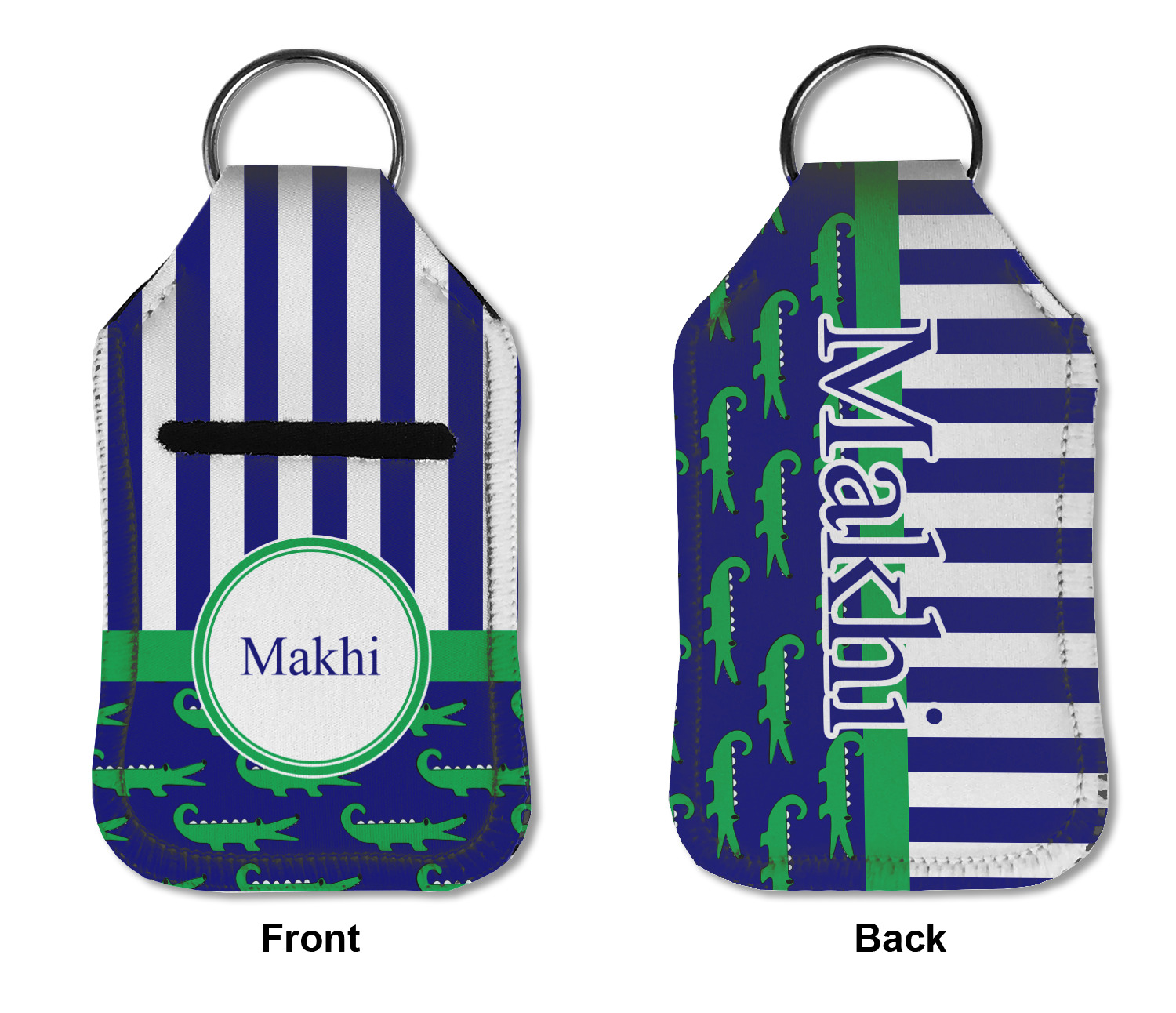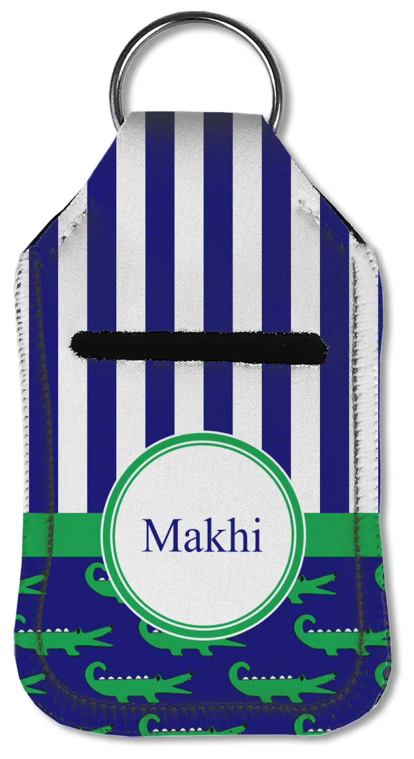 Each hand sanitizer holder comes with its own empty travel-sized, refillable hand sanitizer sure to fit snug in your customized sanitizer case! Our hand sanitizer cases are a durable, yet soft neoprene material sure to last any daily activities or travel agenda. Customize and personalize a hand sanitizer bottle holder with one of our two sizes - small (4.25" x 2.25") or large (5.5" x 2.5"). Each travel sanitizer holder comes with a keyring for attachment on bags, keys, or more!