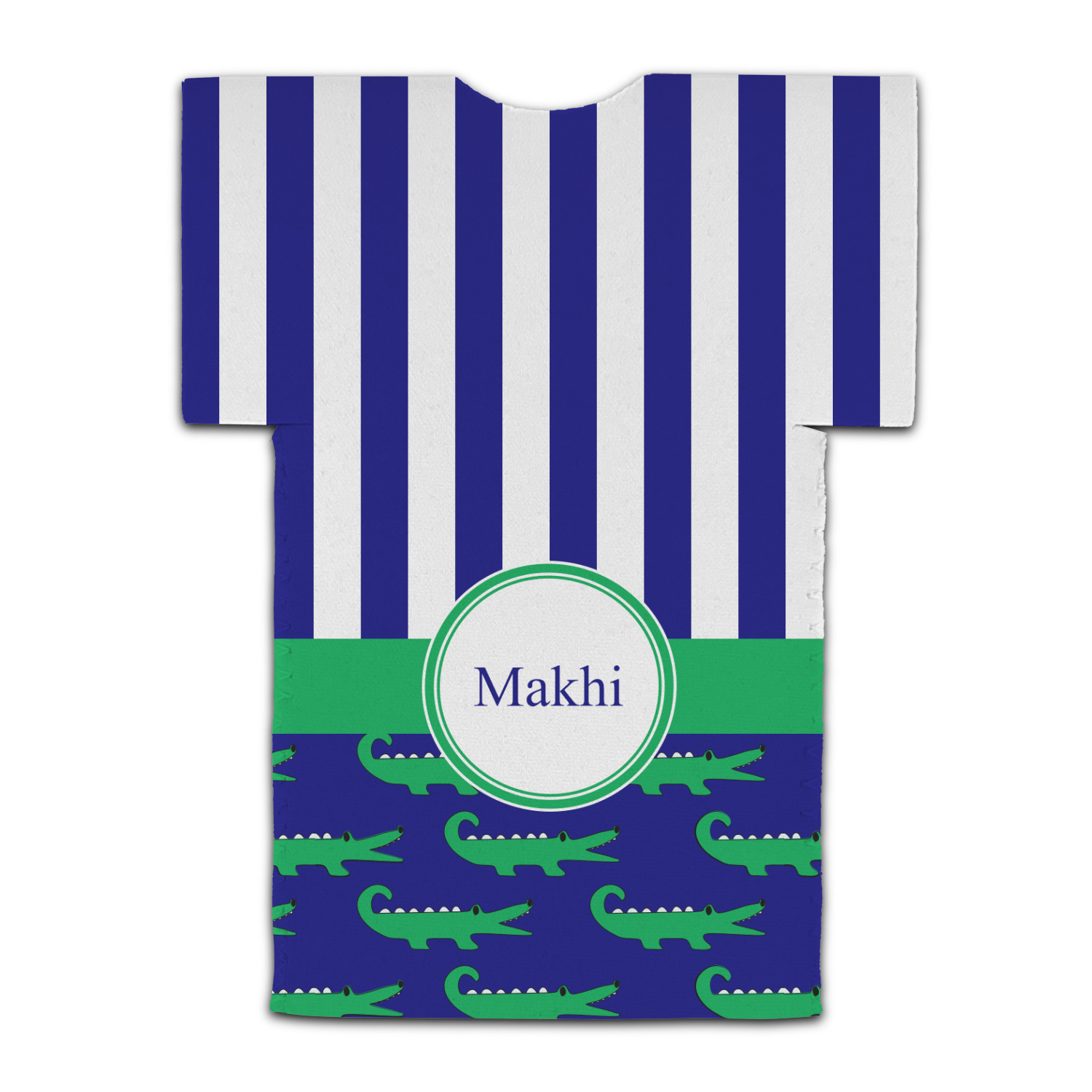 These are the sweetest alligators around! Our adorable green alligators pop and come alive on a blue background. To coordinate the alligator design a bold blue and white striped pattern is added to the top.