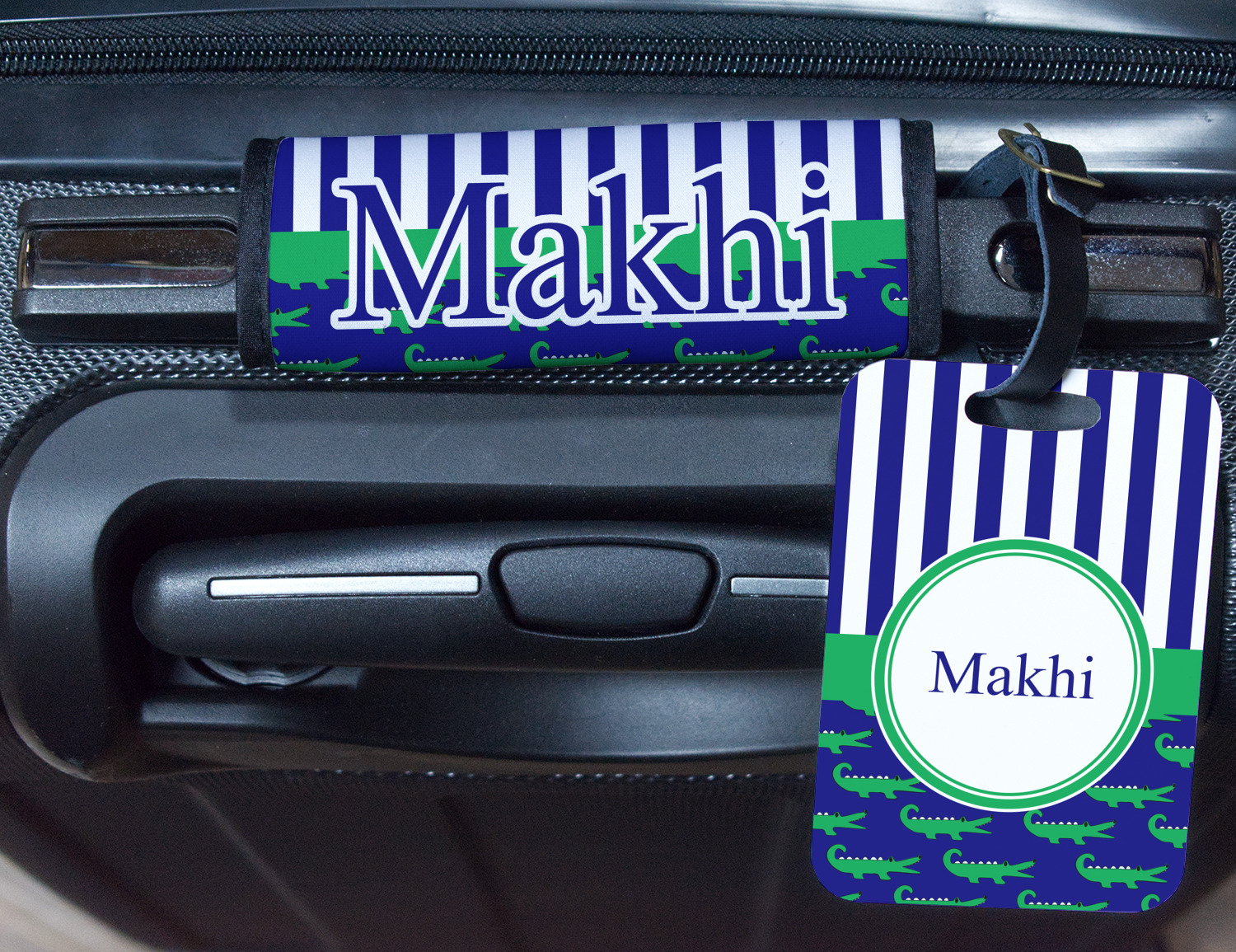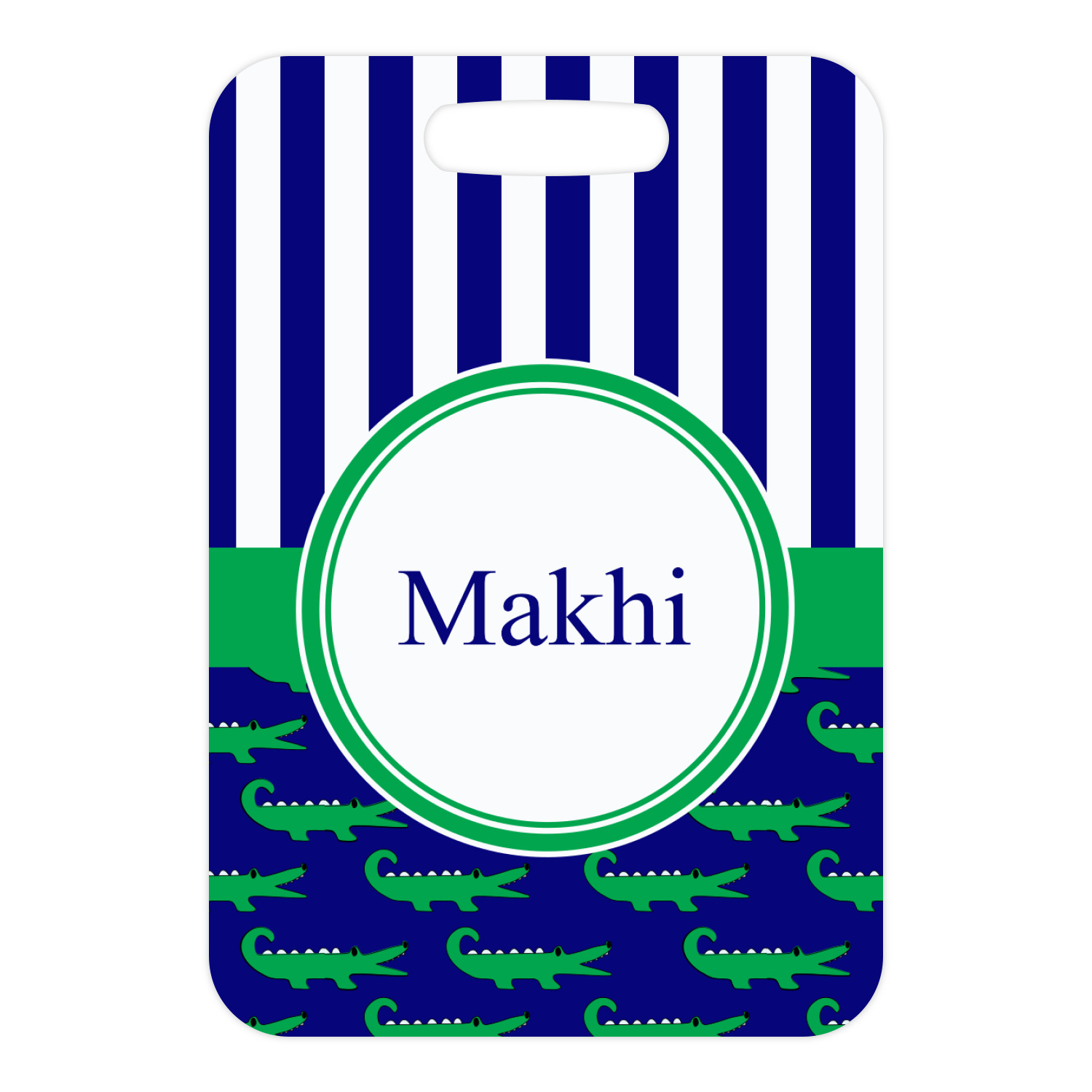 | SKU | mi-rect-luggage-tag-alum+Alligators-Stripes |