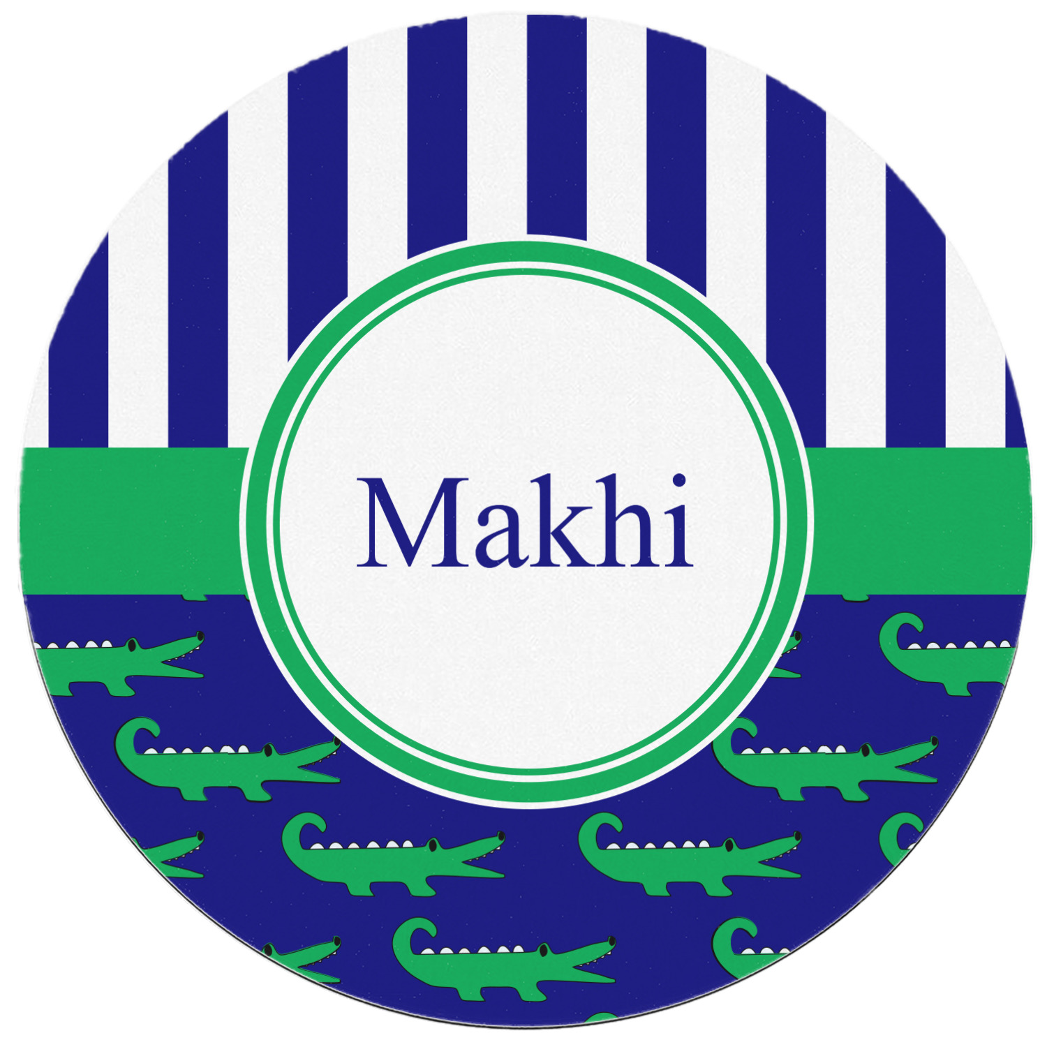 These are the sweetest alligators around! Our adorable green alligators pop and come alive on a blue background. To coordinate the alligator design a bold blue and white striped pattern is added to the top.