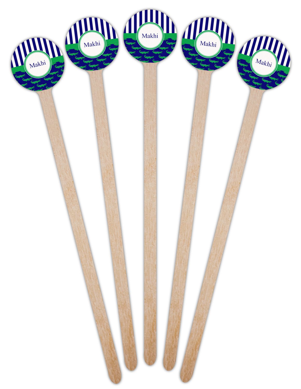 These are the sweetest alligators around! Our adorable green alligators pop and come alive on a blue background. To coordinate the alligator design a bold blue and white striped pattern is added to the top.