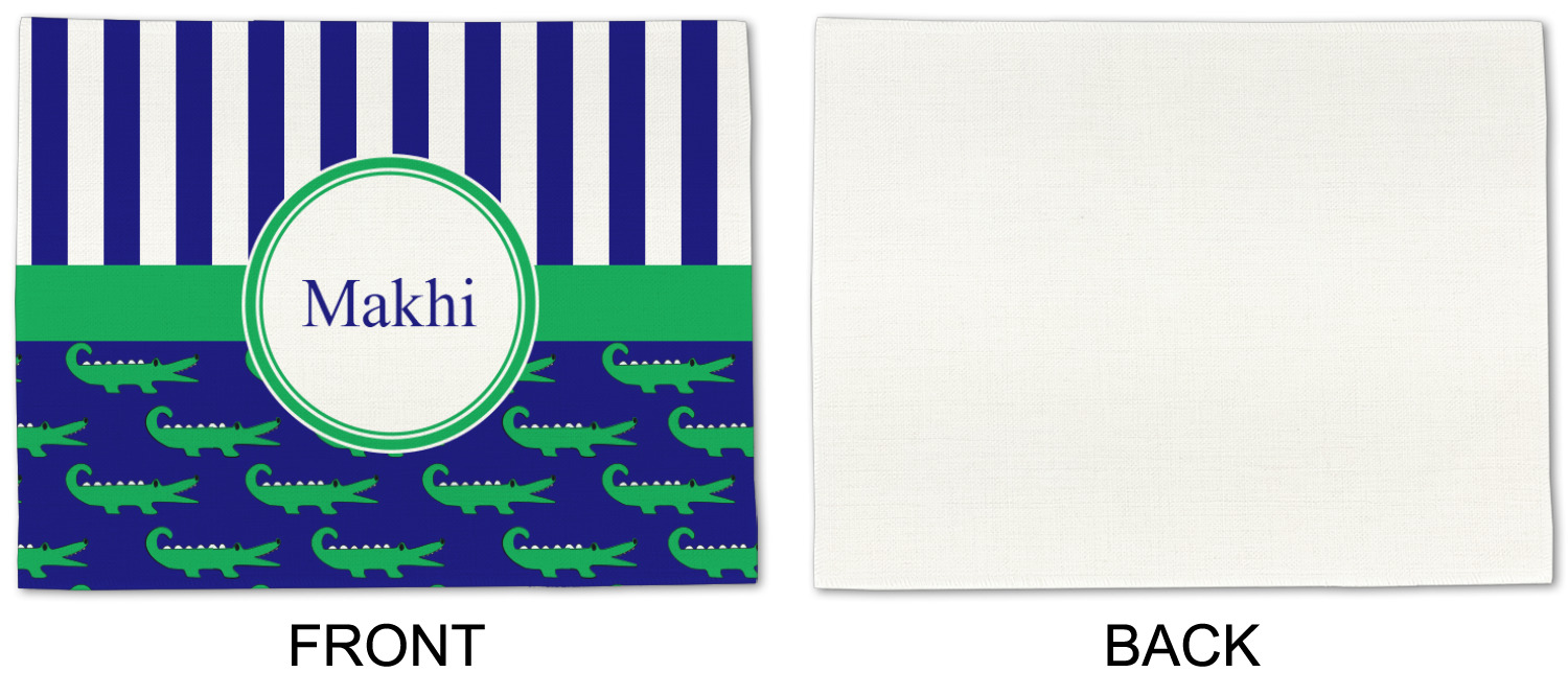 These are the sweetest alligators around! Our adorable green alligators pop and come alive on a blue background. To coordinate the alligator design a bold blue and white striped pattern is added to the top.