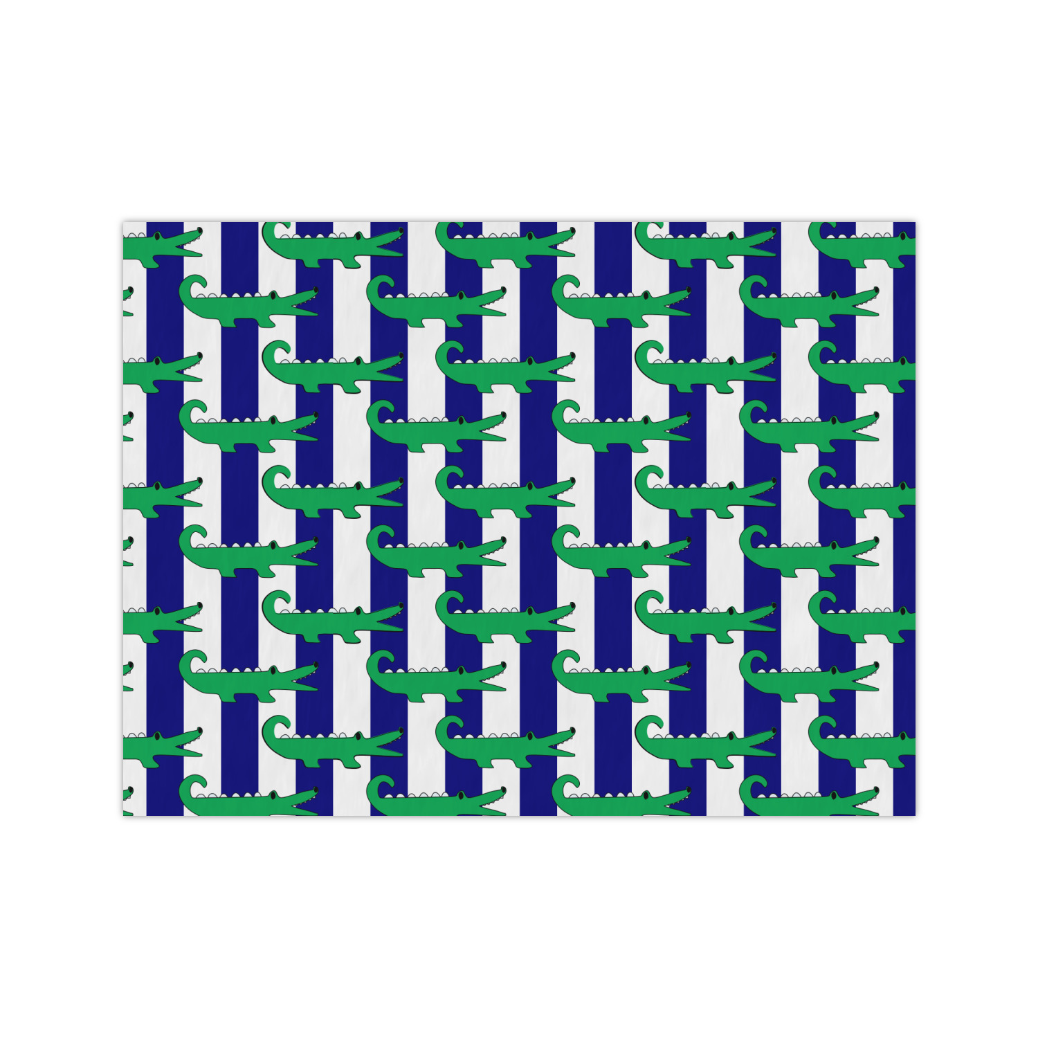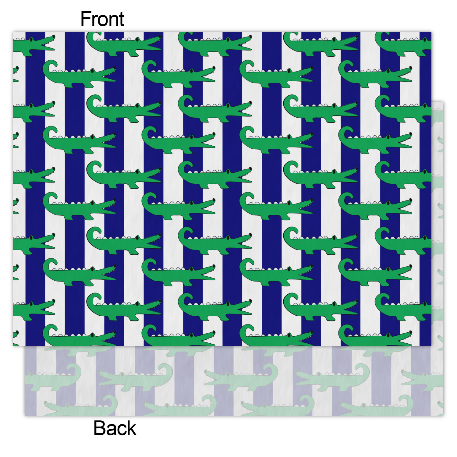 These are the sweetest alligators around! Our adorable green alligators pop and come alive on a blue background. To coordinate the alligator design a bold blue and white striped pattern is added to the top.