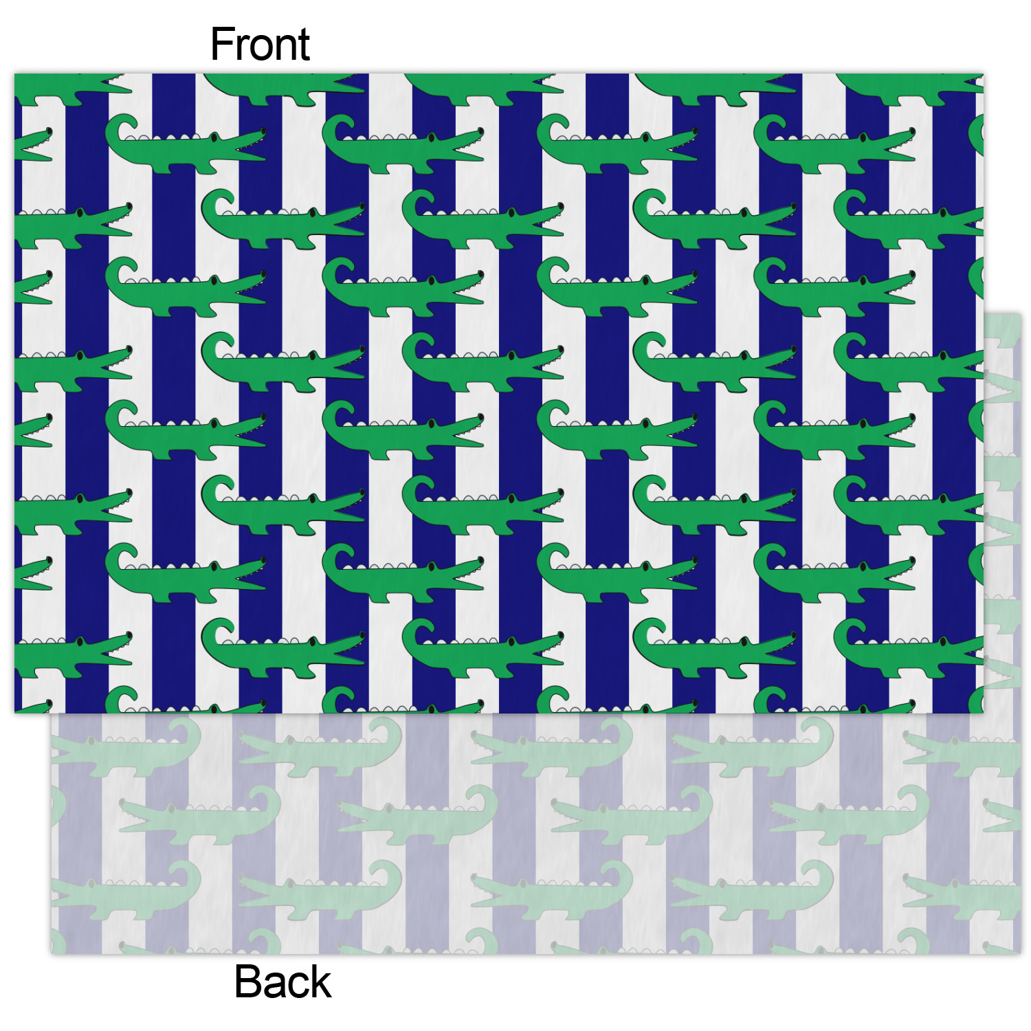 These are the sweetest alligators around! Our adorable green alligators pop and come alive on a blue background. To coordinate the alligator design a bold blue and white striped pattern is added to the top.